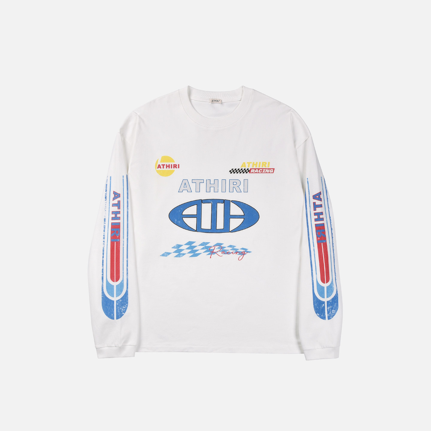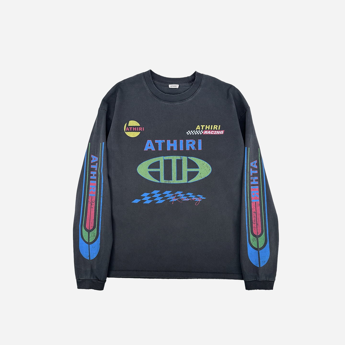 ATHIRI 赛车俱乐部康丽数码印花件染复古洗水做旧纪念长袖t恤