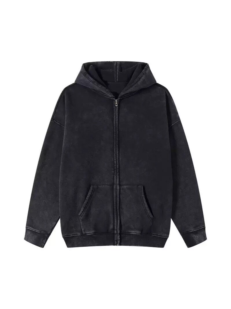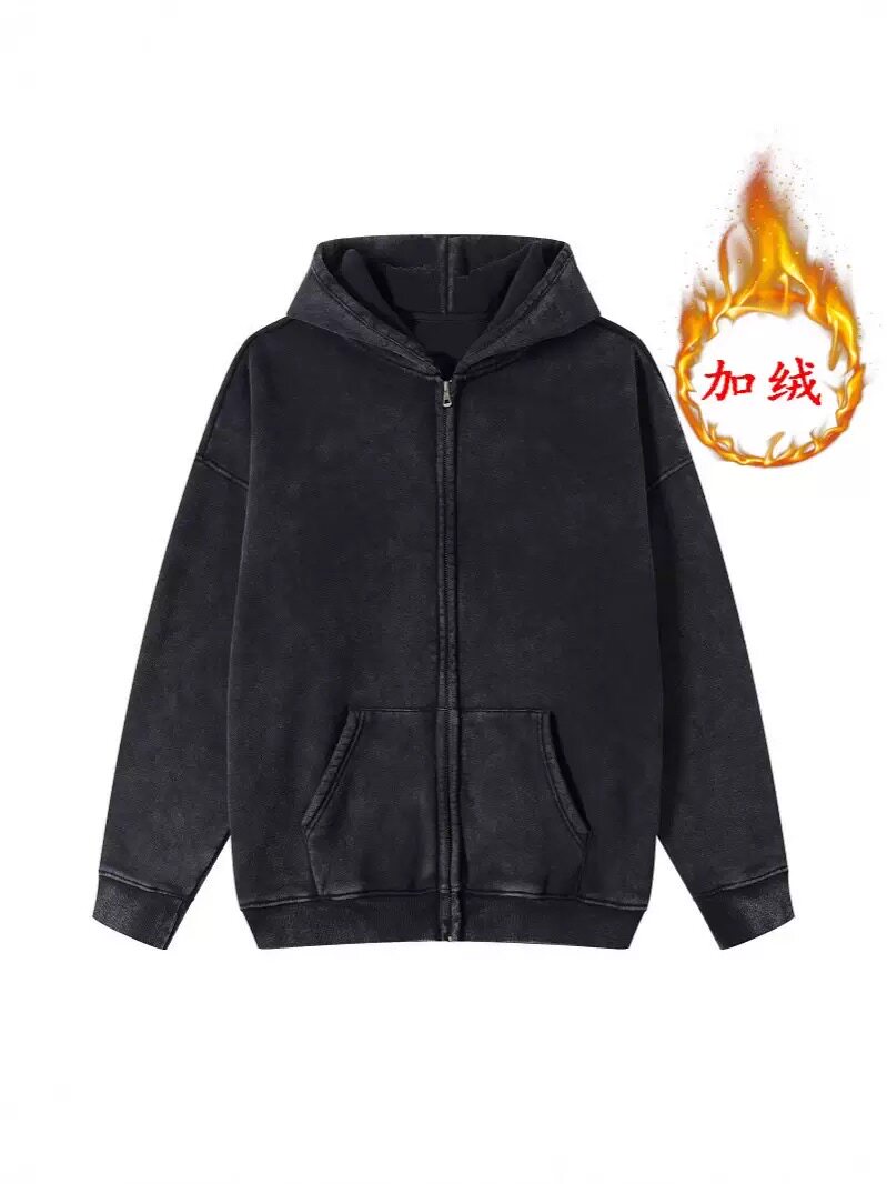研棉世家水洗做旧卫衣开衫拉链连帽纯棉面外套男女同款薄款和加绒