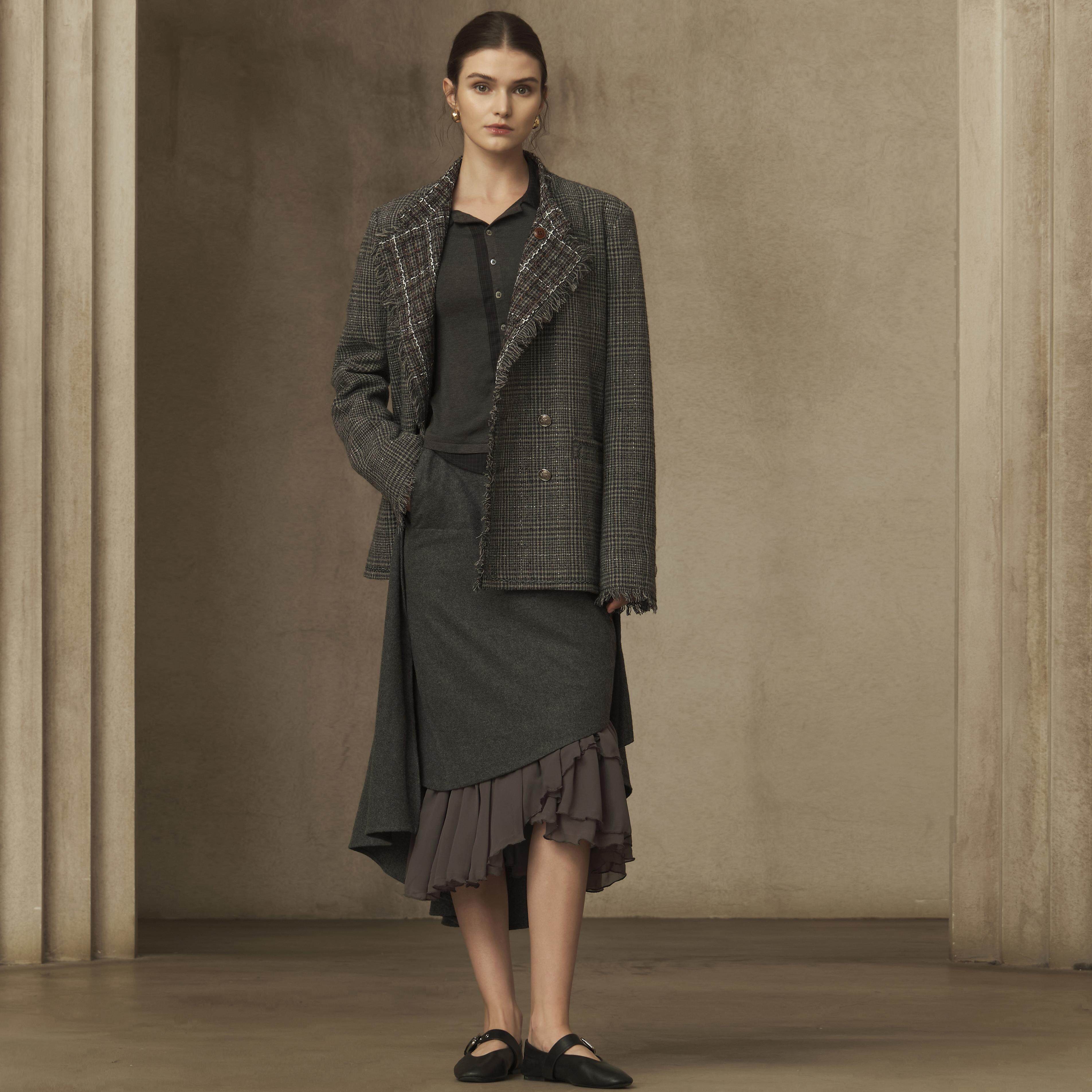 --------------------- TAM TUAS【极夜】粗花呢羊毛千鸟格立领宫廷双排扣流苏西装 【原售价】1749元 【现售价】1539元 【推荐理由】