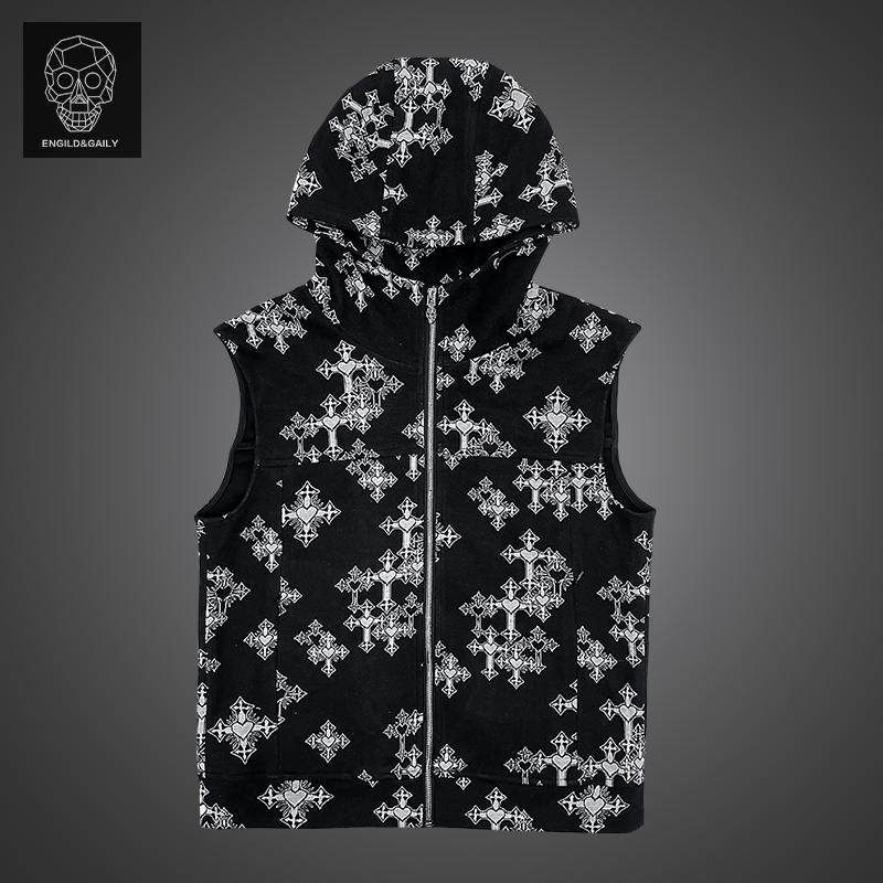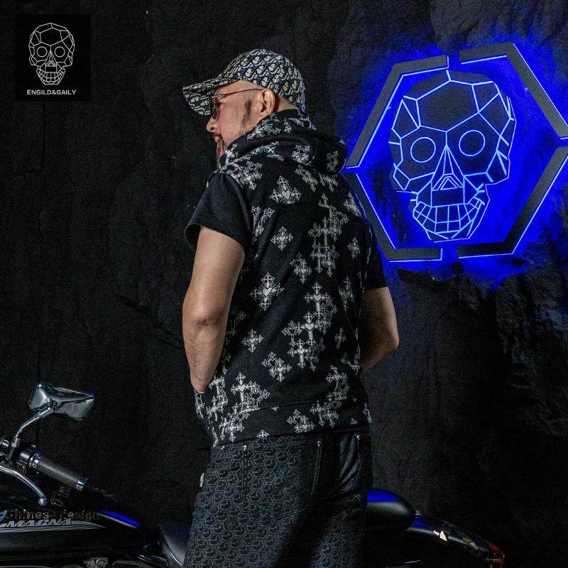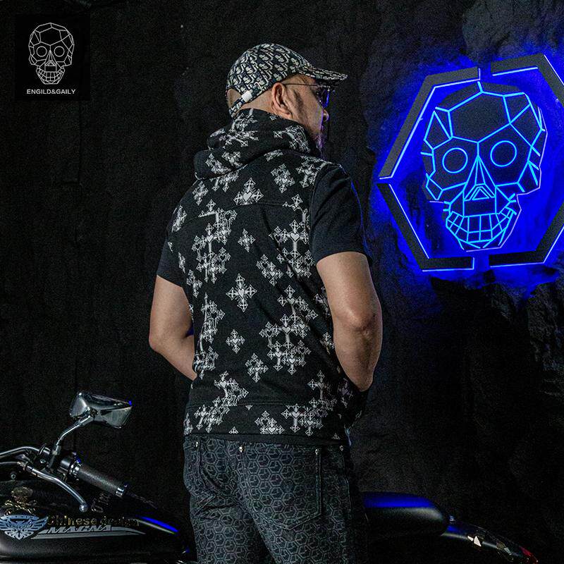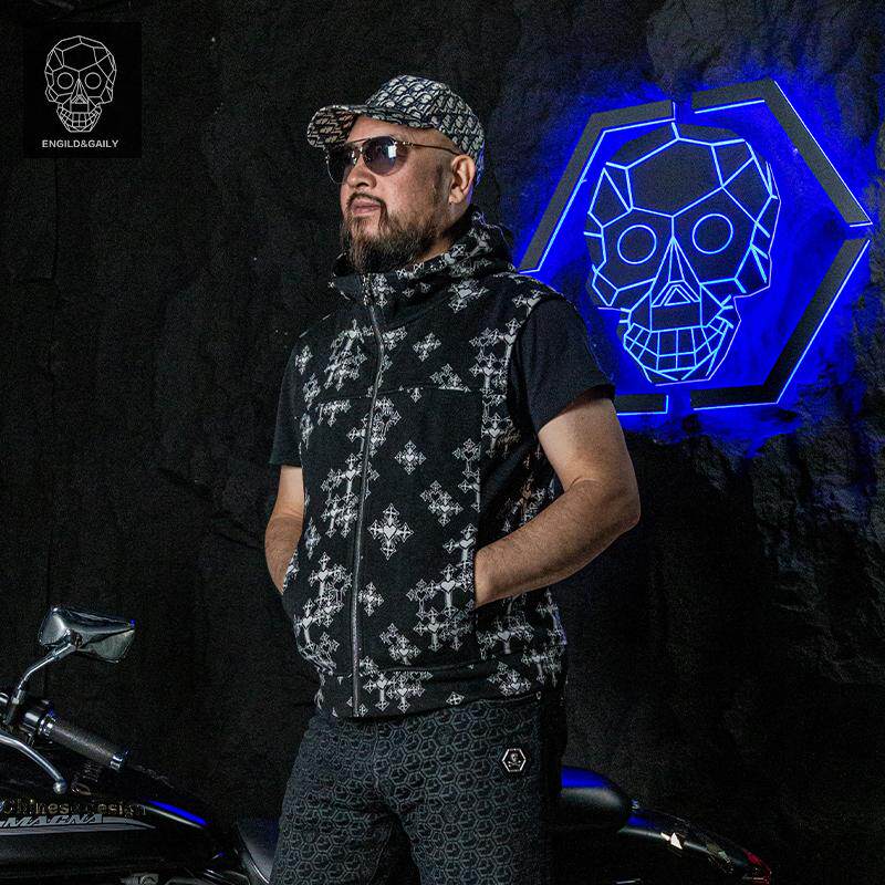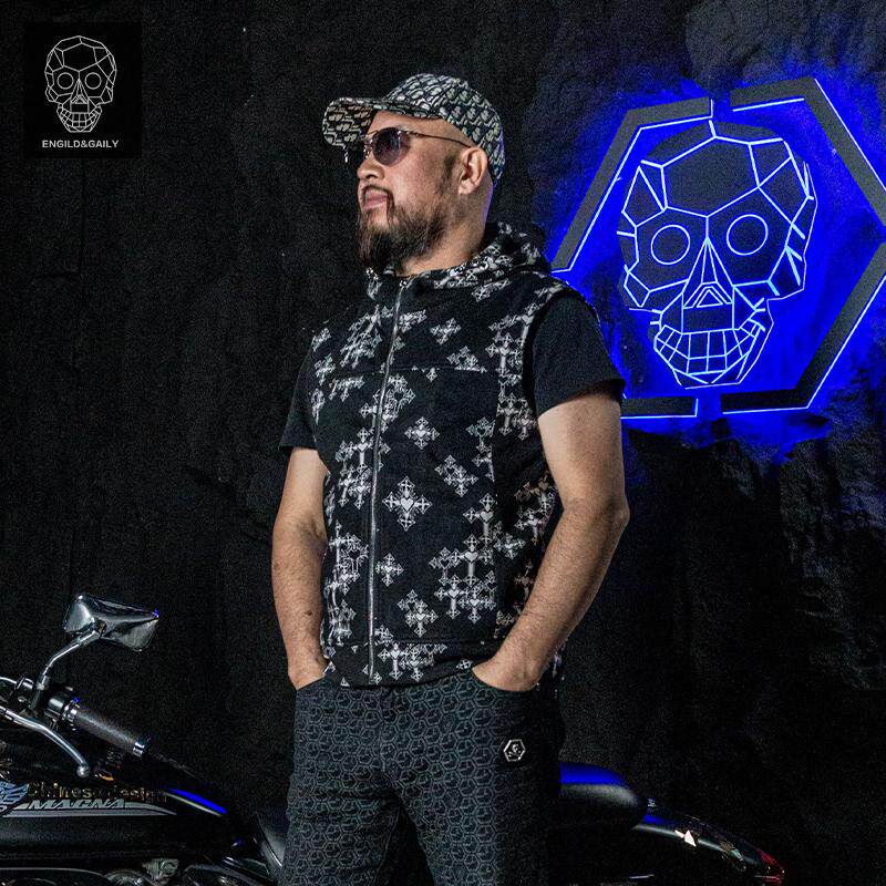 金刚铁甲骷髅头原创潮牌中古十字架满提花马甲男士外套2025新款