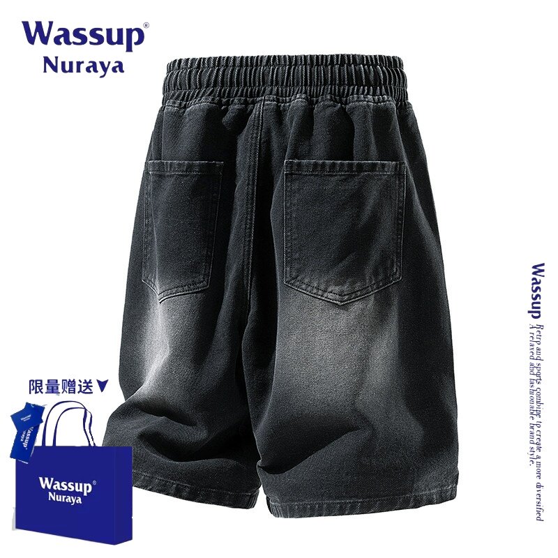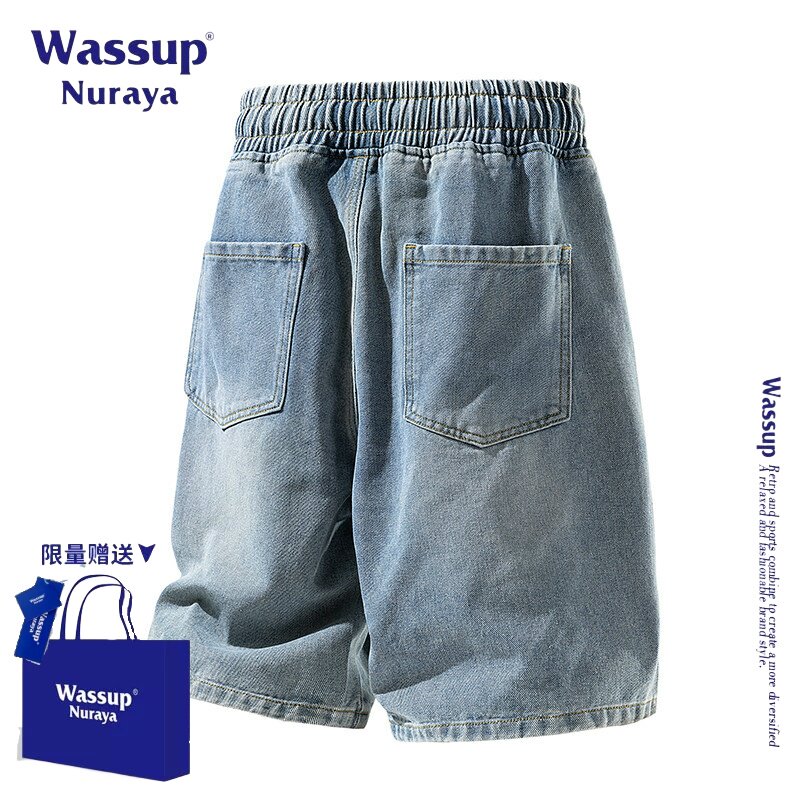 --------------------- WASSUP NURAYA美式牛仔短裤男夏季薄款松紧腰抽绳宽松休闲五分裤 【原售价】69元 【现售价】62.1元 【推荐理由】
