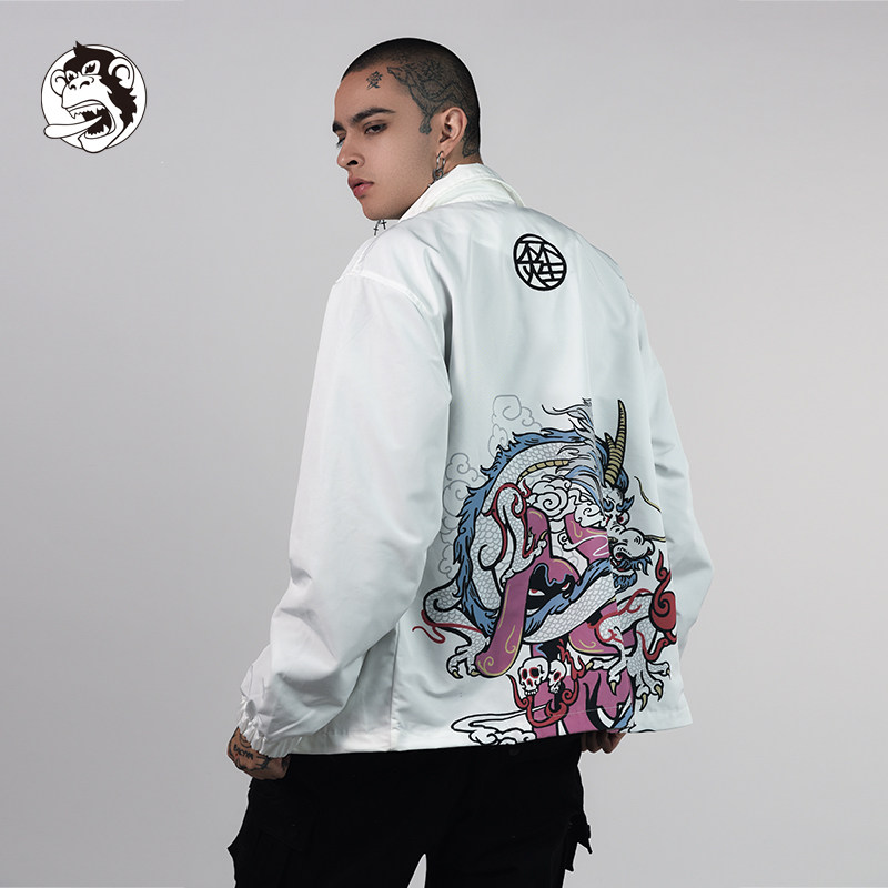 --------------------- WOOKONG 悟空 春夏小白龙印花教练夹克 百搭国潮男士女工装外套 【原售价】880元 【现售价】411元 【推荐理由】