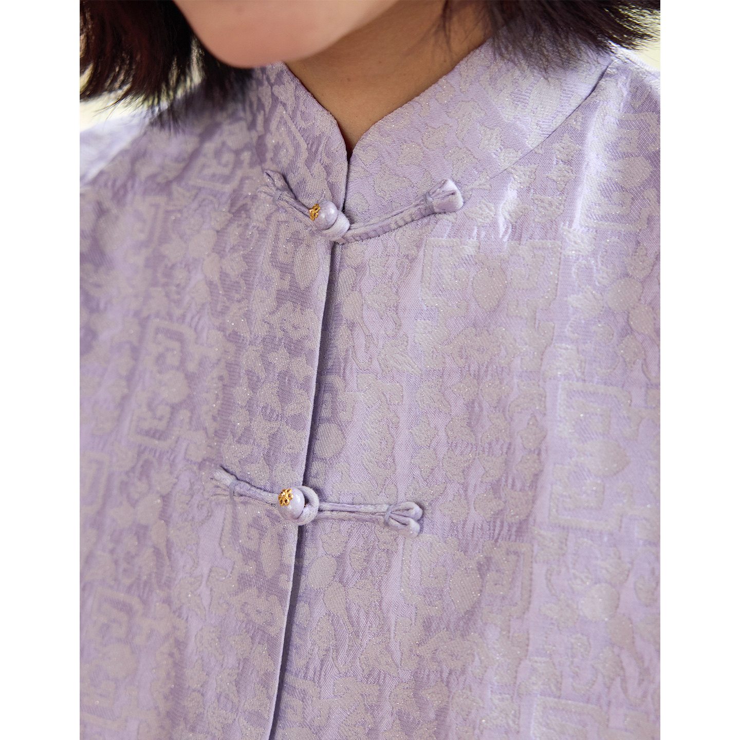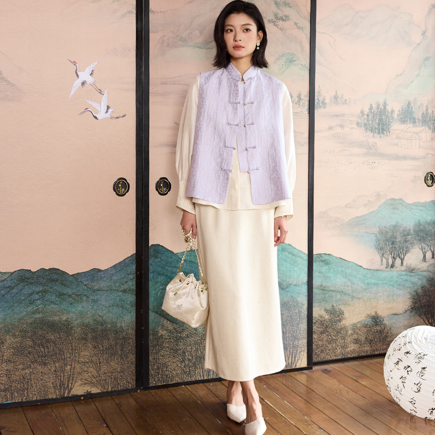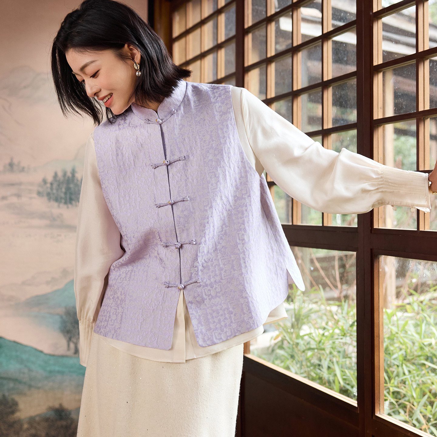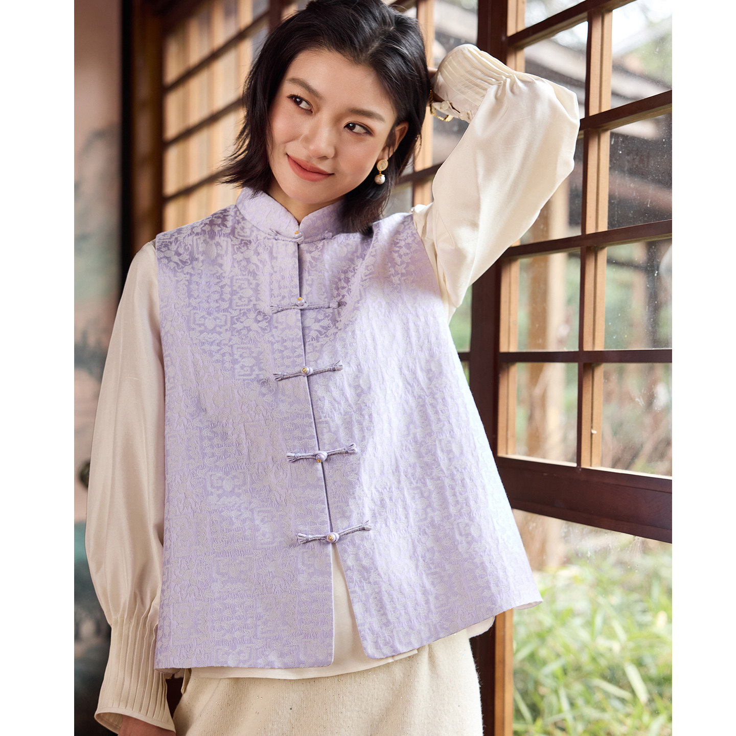 --------------------- 菲伊唐上久楷丝毛亮片绸中式国潮马甲复古改良对襟立领马夹女上衣 【原售价】798元 【现售价】702元 【推荐理由】
