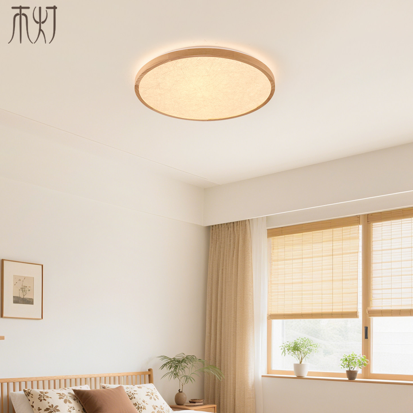 原木风客厅吸顶灯北欧日式实木蚕丝灯新中式宋代美学房间餐厅灯具