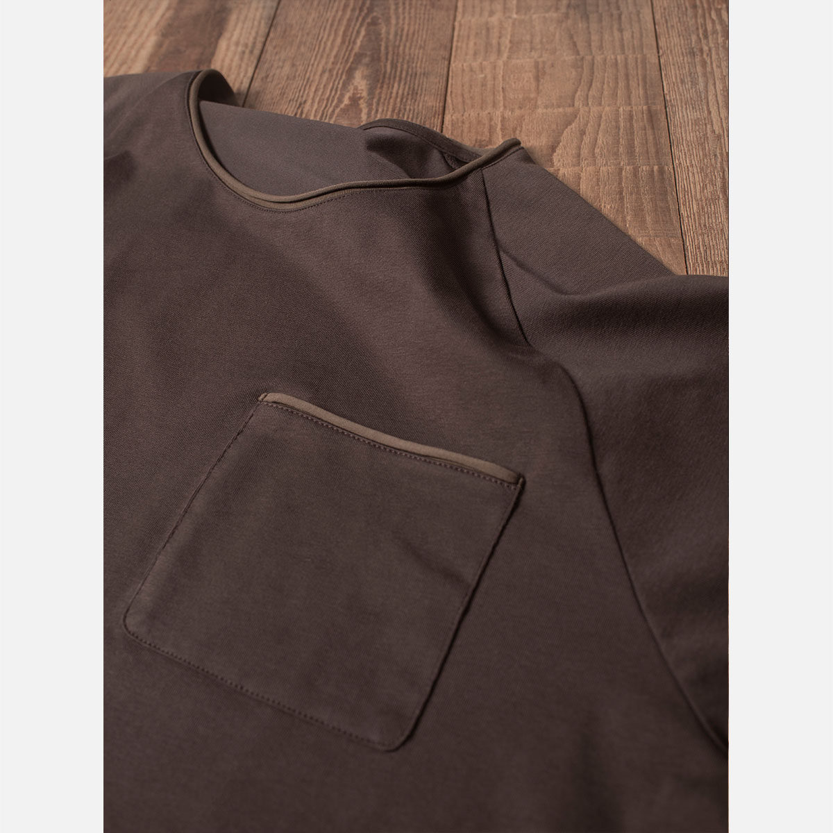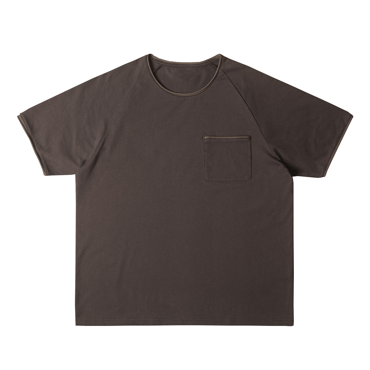 Double seam 拼色口袋短袖T恤插肩袖 卷边圆领宽松复古机车