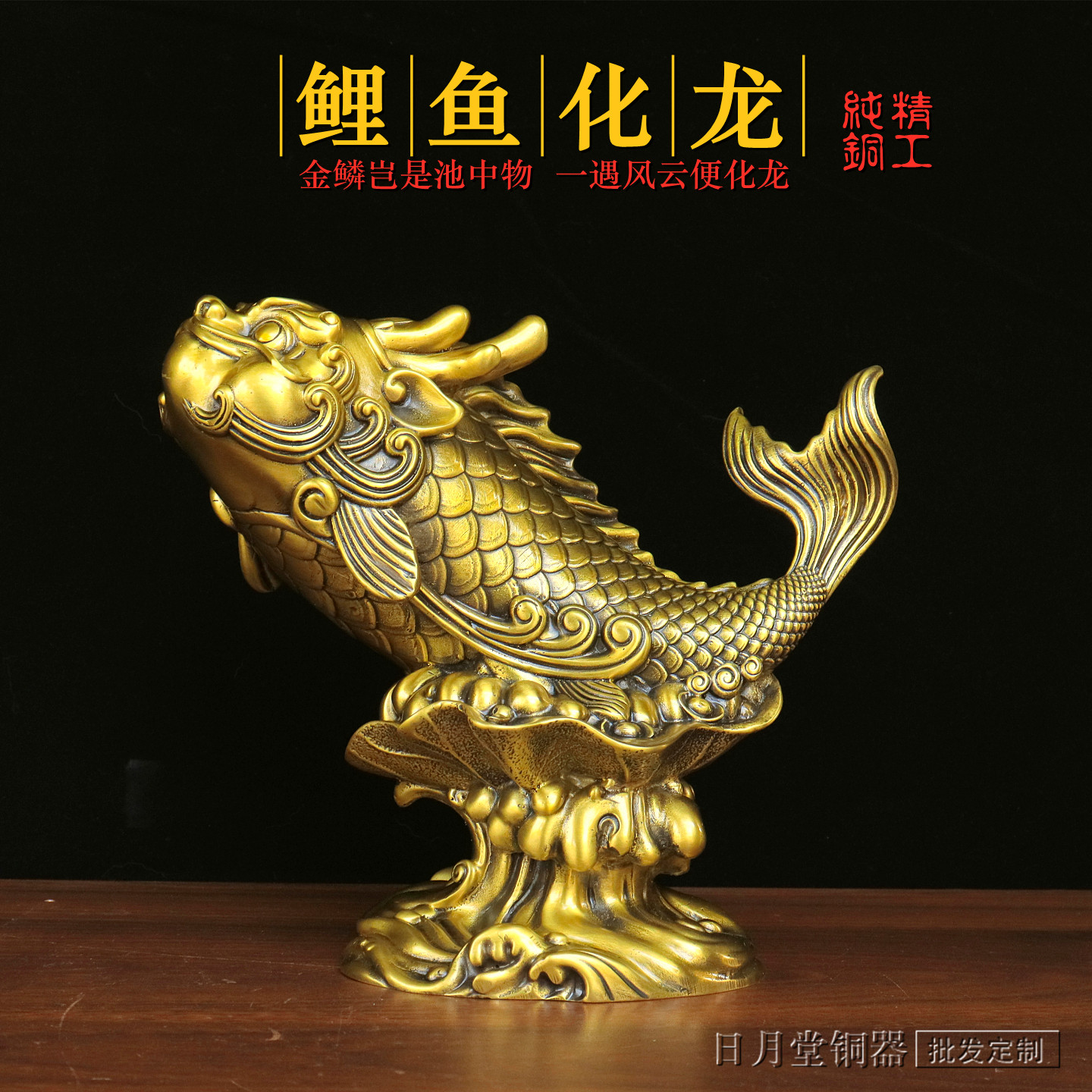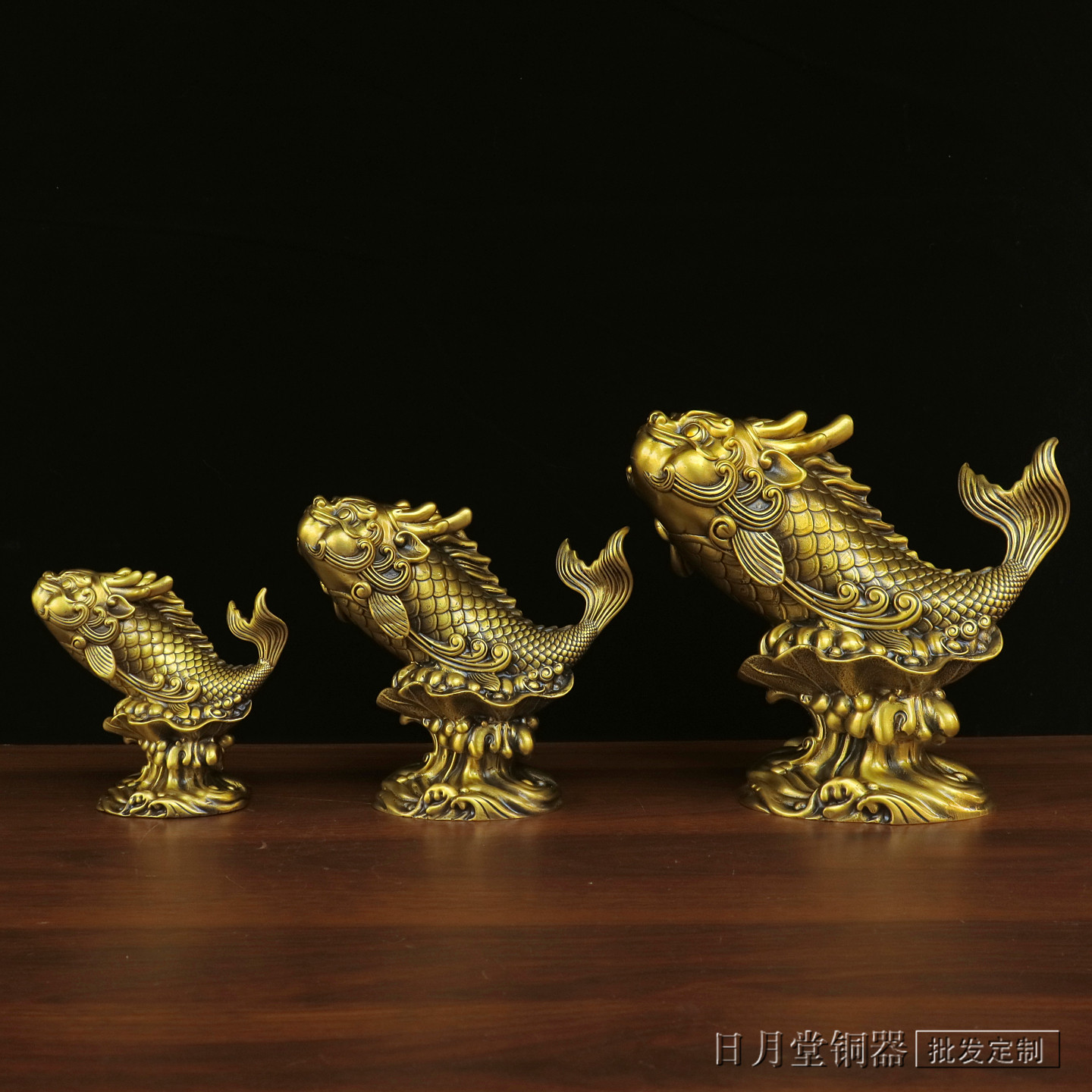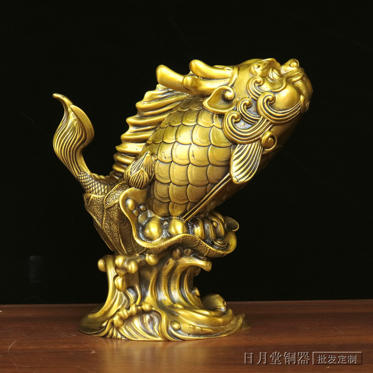 纯铜龙鱼鳌鱼龙头鲤鱼化龙鲤鱼跃龙门金鳞变龙家用书房办公室摆件