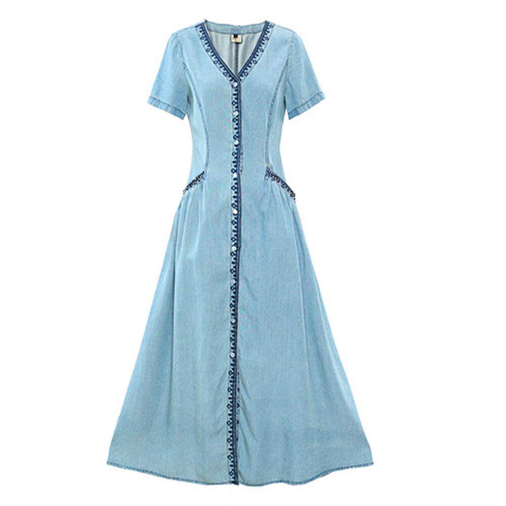 --------------------- 开衫V领显瘦牛仔长裙女2026夏季新款复古港风刺绣大摆连衣裙A字裙 【原售价】518元 【现售价】191元 【推荐理由】