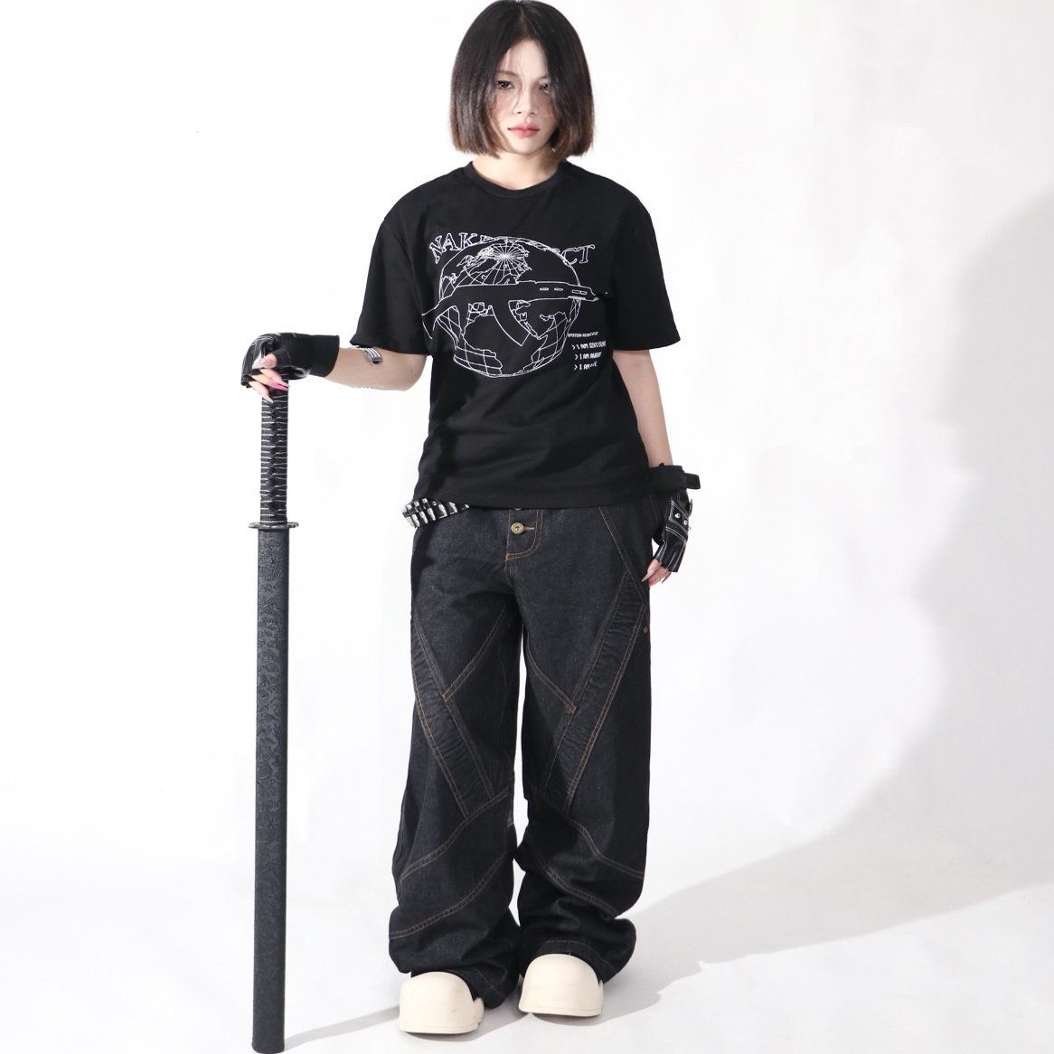 YIZILINGF 美式小众解构拼接牛仔裤男女个性黑色宽松直筒长裤子