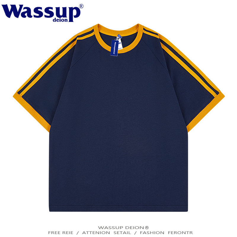 wassupdeion日系条纹校园风短袖T恤男夏季宽松大码青少年百搭半袖