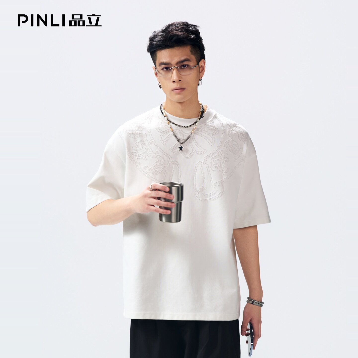 --------------------- PINLI品立2026夏季新款男士宽松圆领激光烧花短袖T恤休闲上衣潮牌 【原售价】199元 【现售价】152元 【推荐理由】