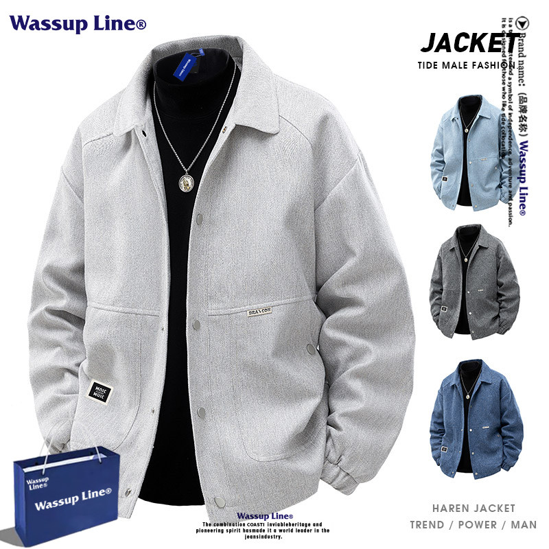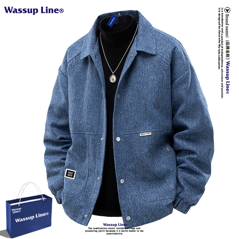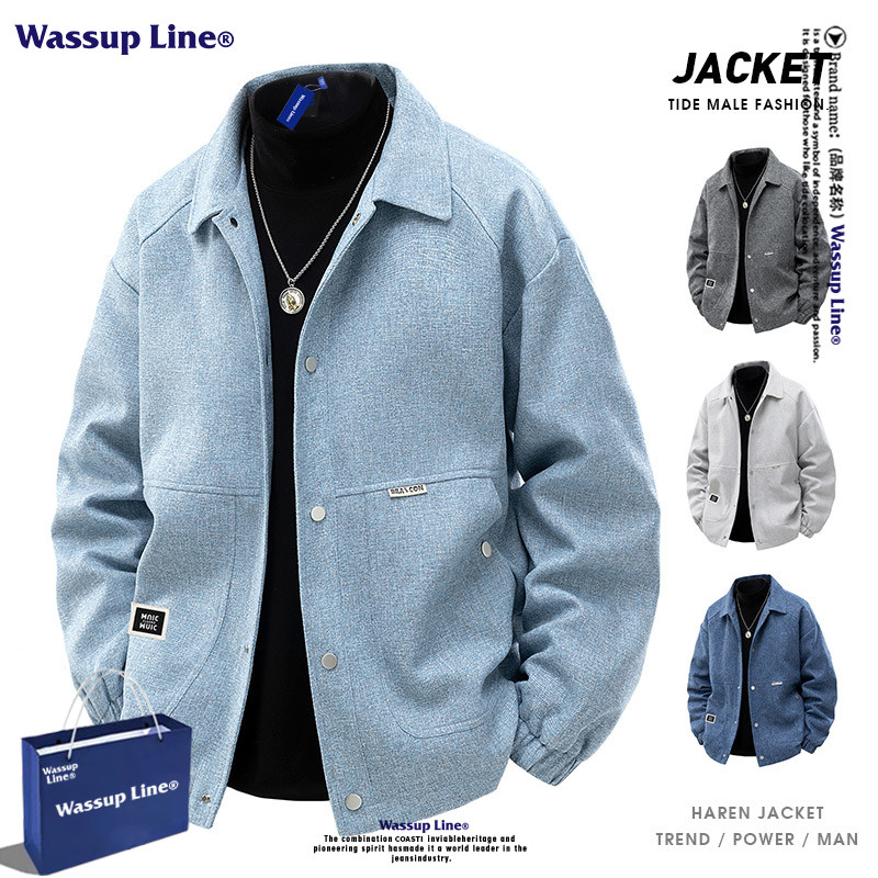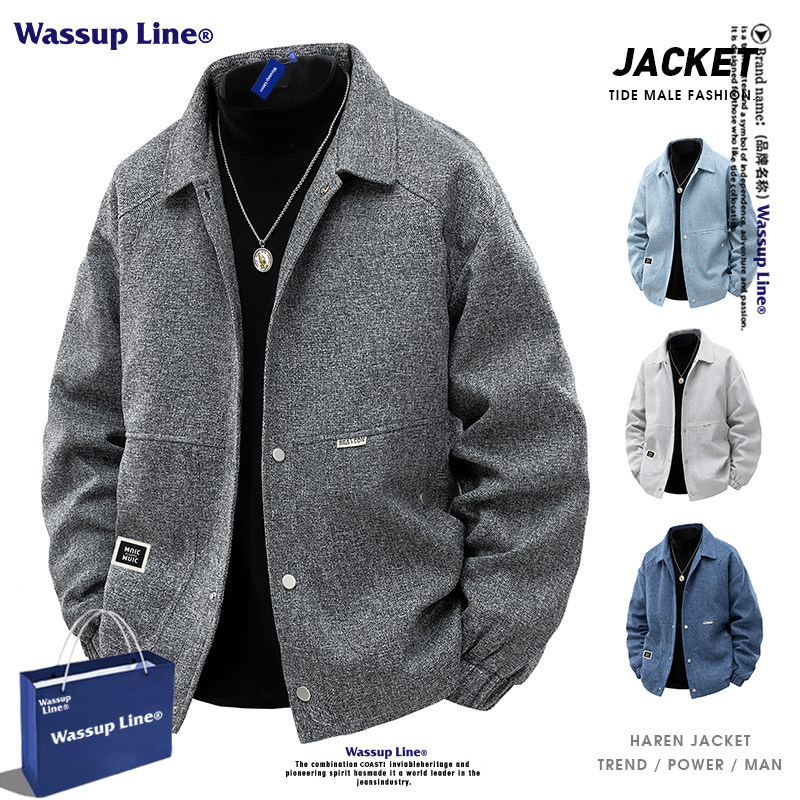 --------------------- WASSUP LINE潮牌复古毛呢翻领夹克男款春秋宽松百搭大码情侣外套 【原售价】198元 【现售价】103元 【推荐理由】