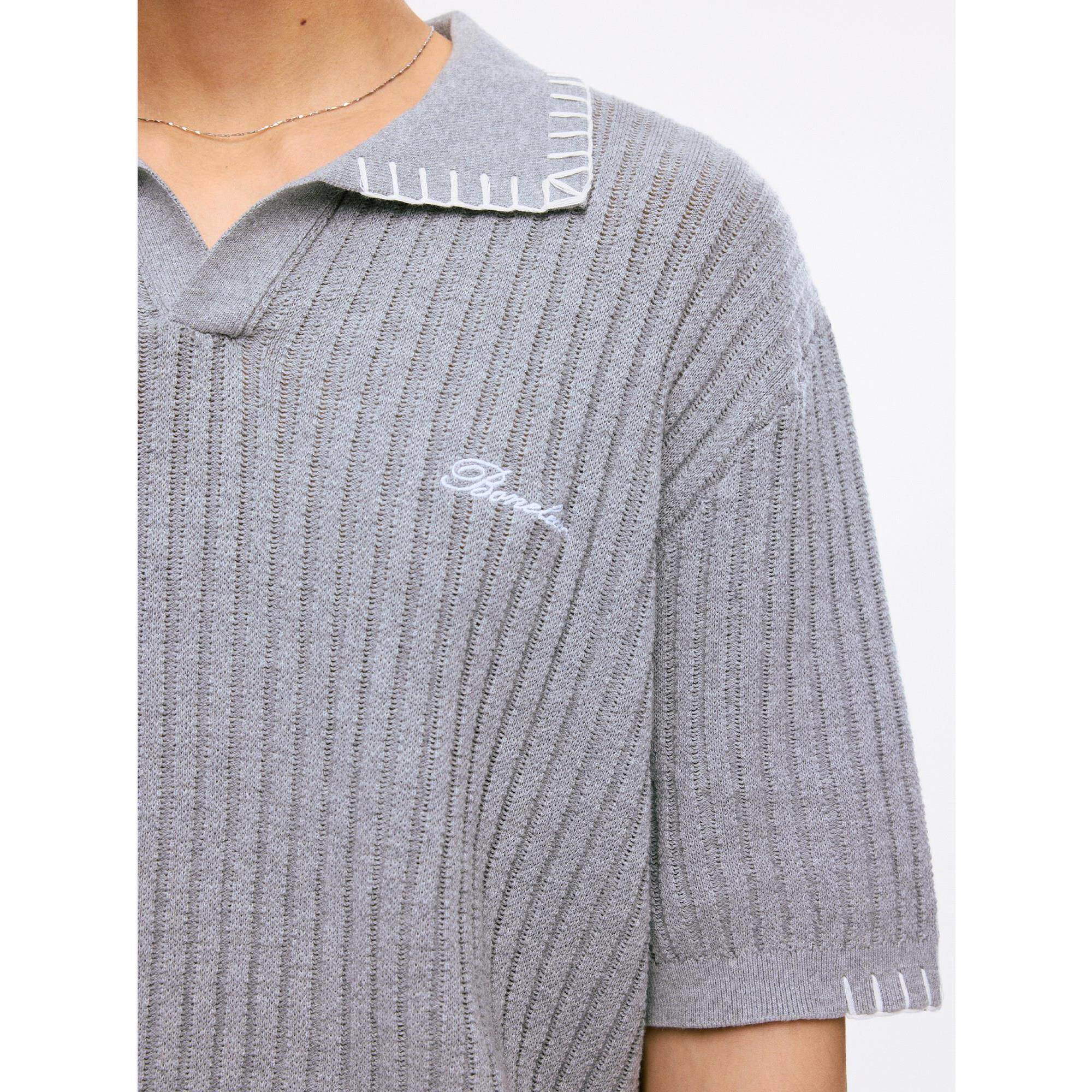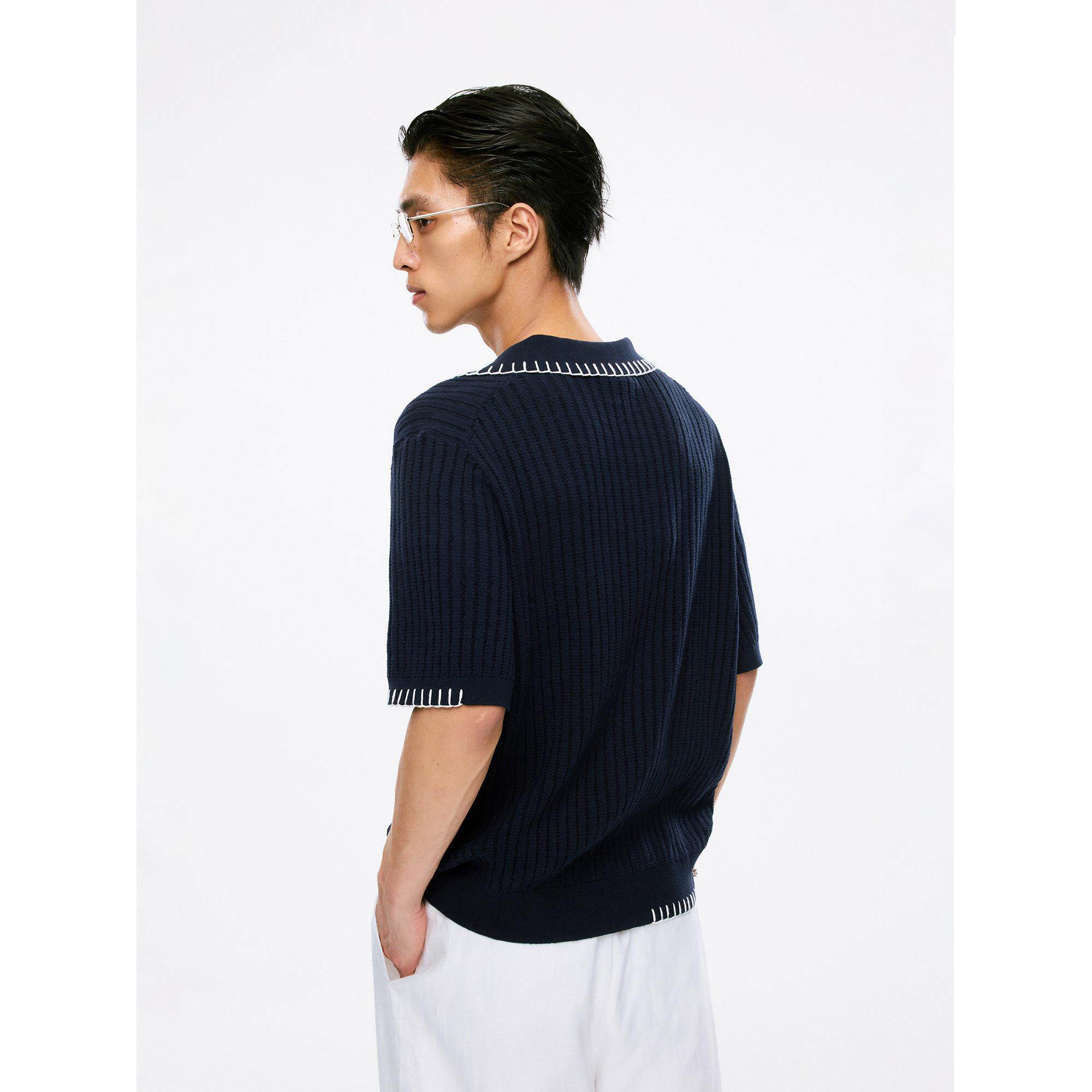 【蔡徐坤同款】BONELESS撞色装饰线花体绣花毛织短袖复古针织衫