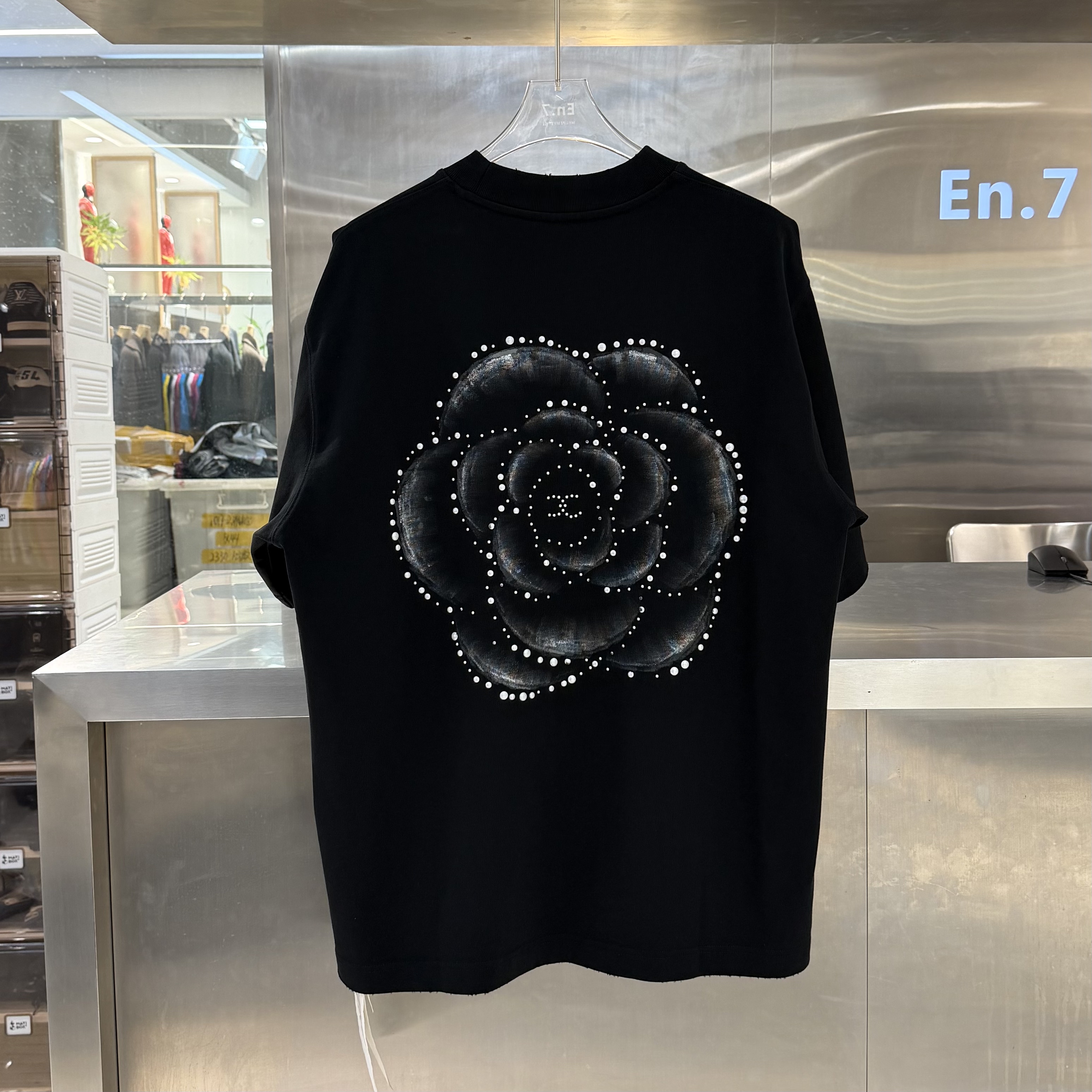 --------------------- 潮牌26春夏重磅短袖T恤男ins国潮手绘山茶花珍珠宽松青年情侣半袖 【原售价】258元 【现售价】227元 【推荐理由】