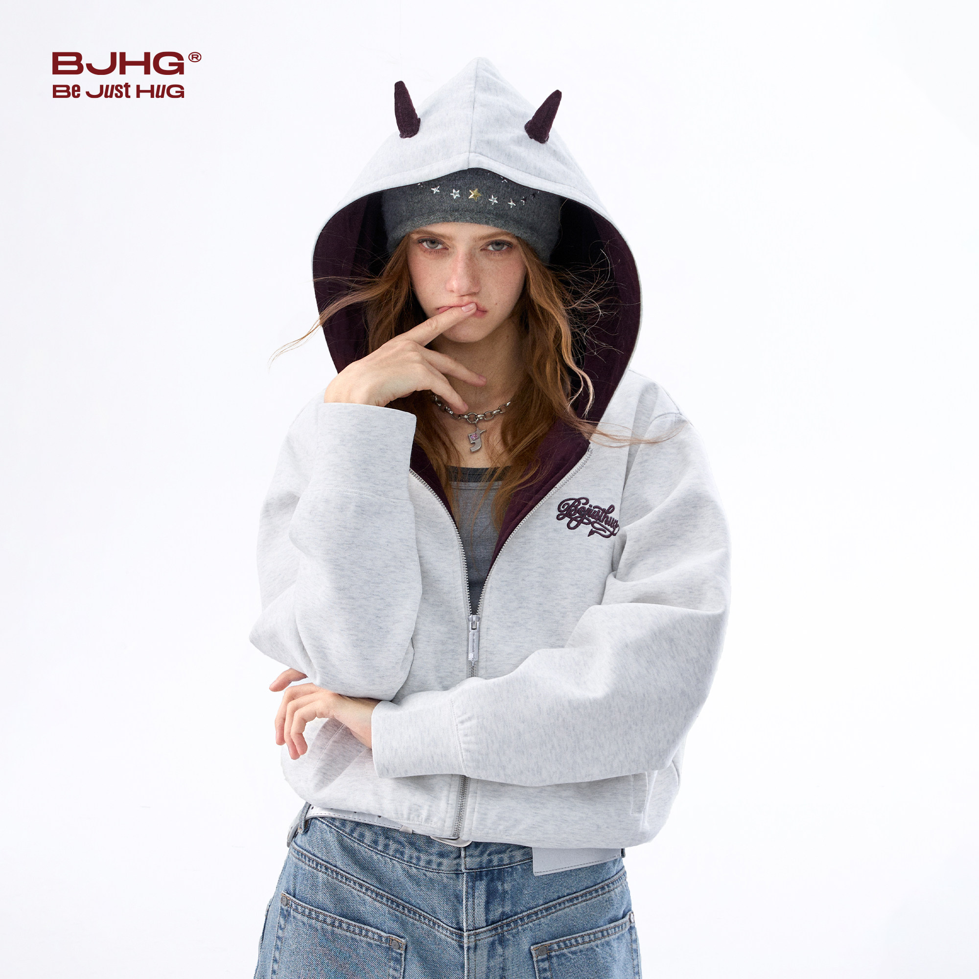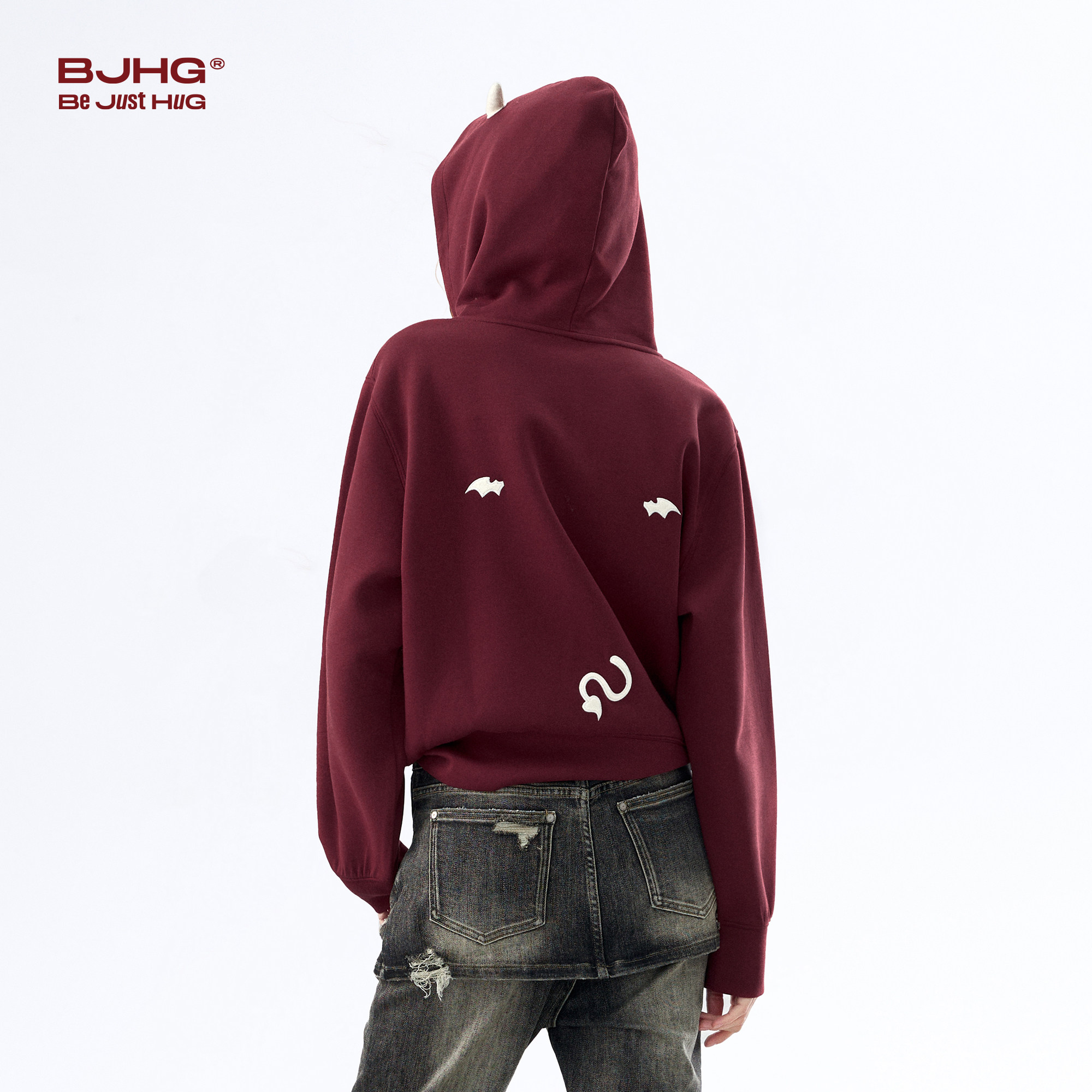 BJHG不计后果小恶魔连帽卫衣女春季新款开衫上衣美式复古短款外套
