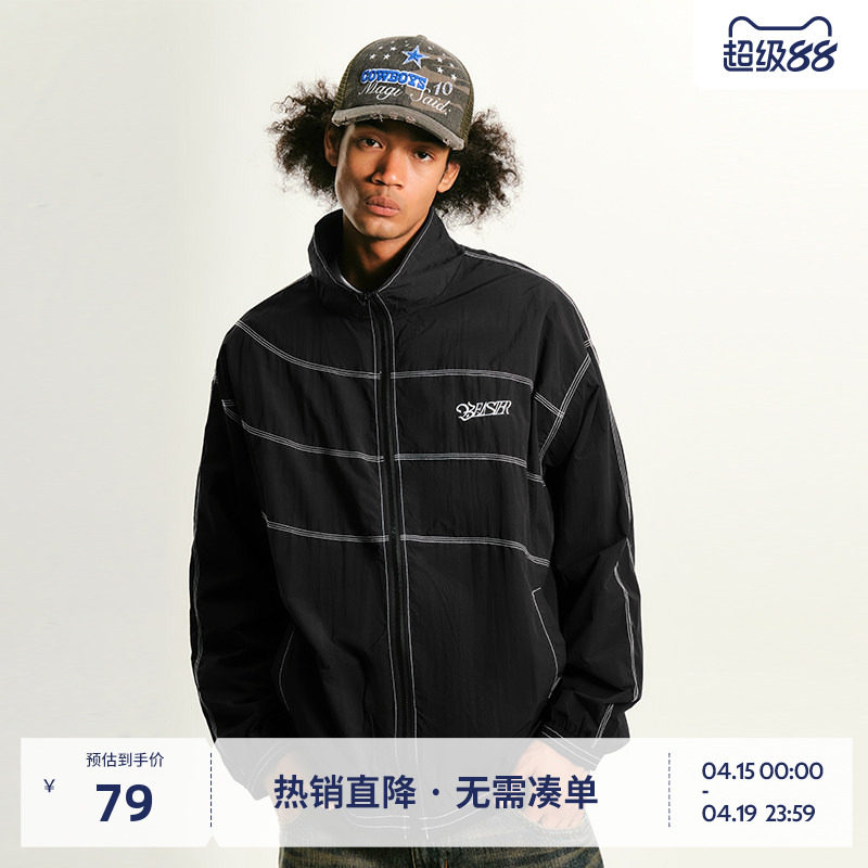 淘宝BEASTER潮牌运动夹克情侣开衫夏季户外国潮撞色美式复古外套男