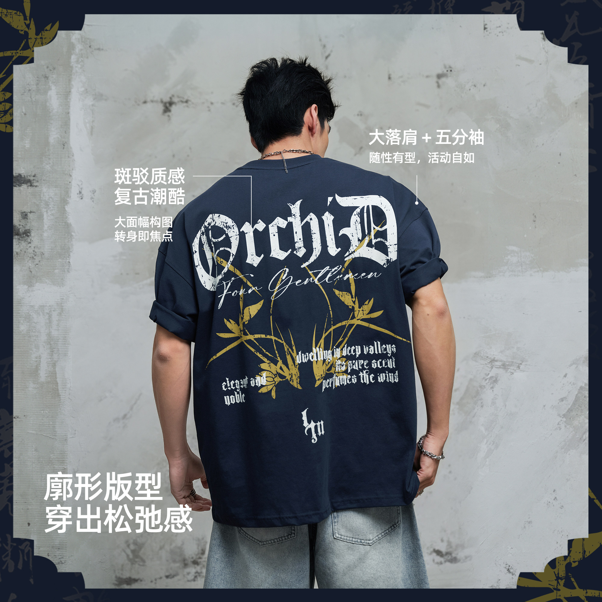 淘宝鹿家门中式原创梅兰竹菊T恤男夏宽松大码防晒凉感抗菌索罗娜短袖