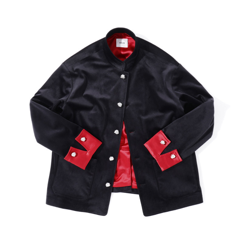 MUSLUNCOM新年新款新中式金属扣进口丝绒醋酸立领男女外套