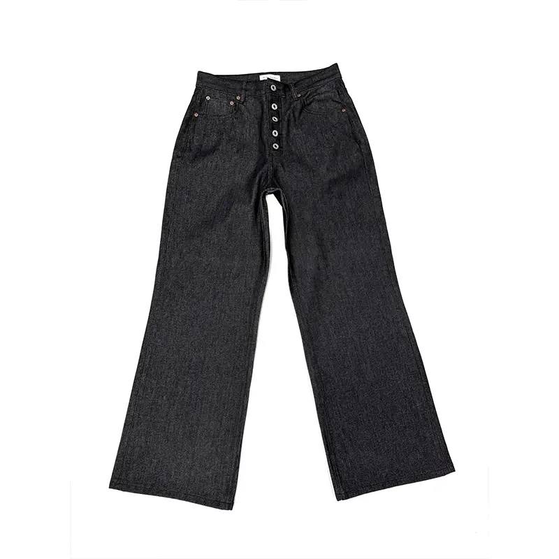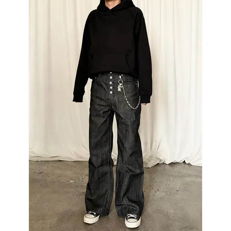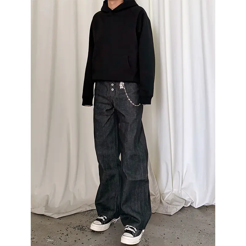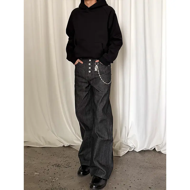Design Create 五连扣未脱浆康龙原牛14.5OZ宽松直筒黑色牛仔裤男