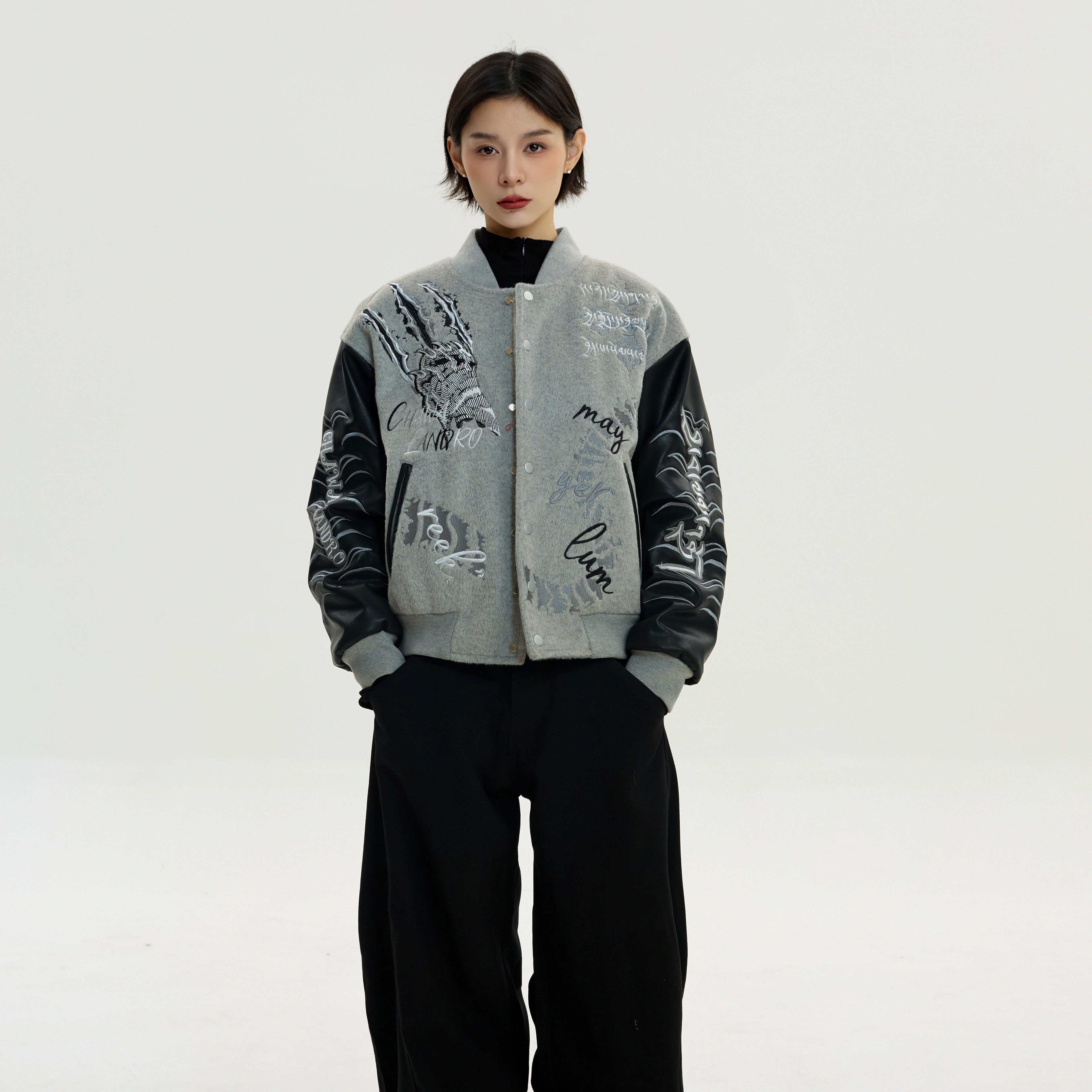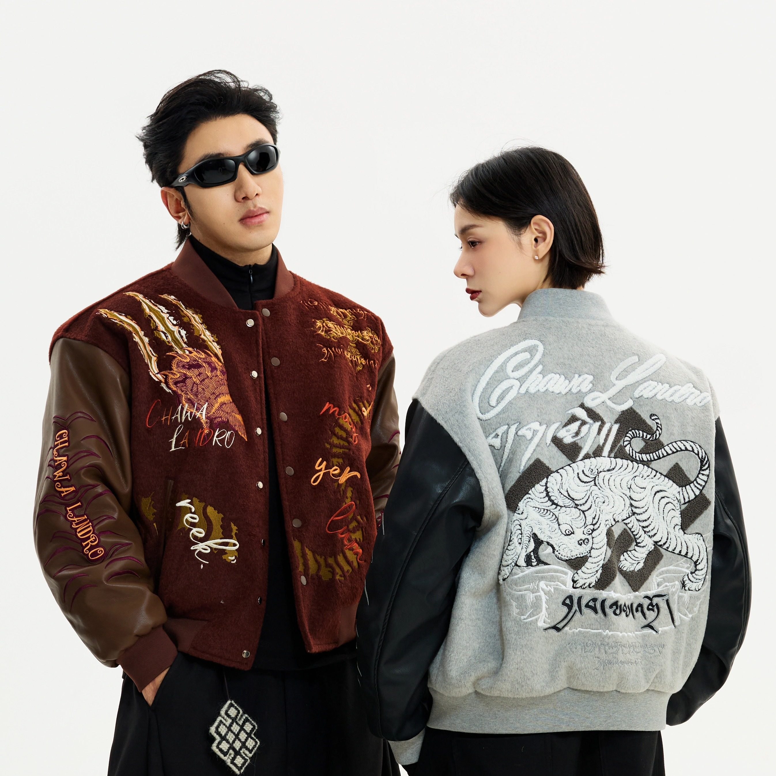 CHAWALANDRO【守护】国潮刺绣高街重磅潮牌棒球外套夹克潮流街头