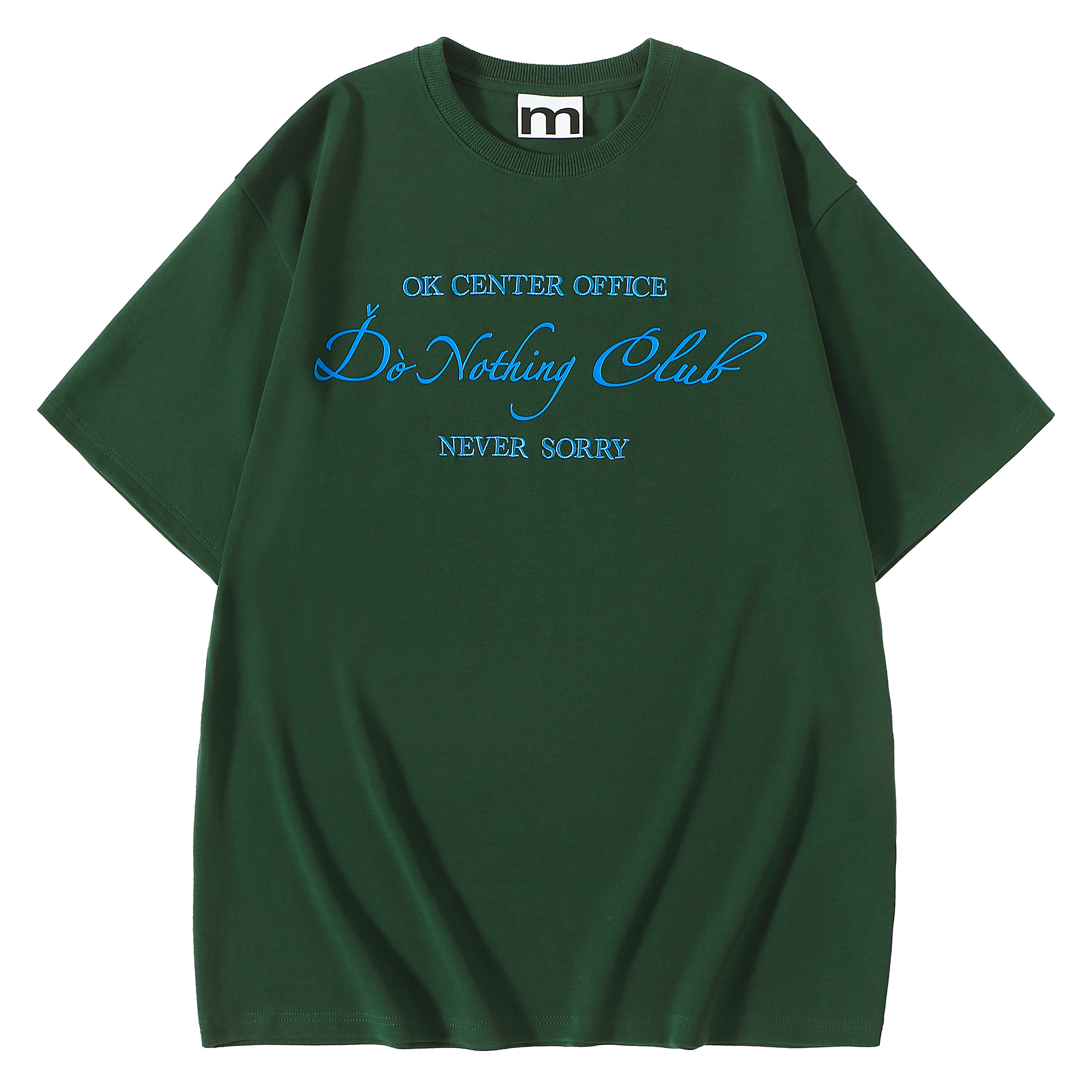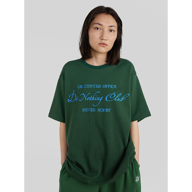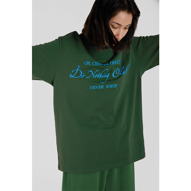 OK center do nothing club 墨绿刺绣垂感纯棉宽松圆领tee