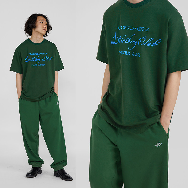 --------------------- OK center do nothing club 墨绿刺绣垂感纯棉宽松圆领tee 【原售价】309元 【现售价】166元 【推荐理由】