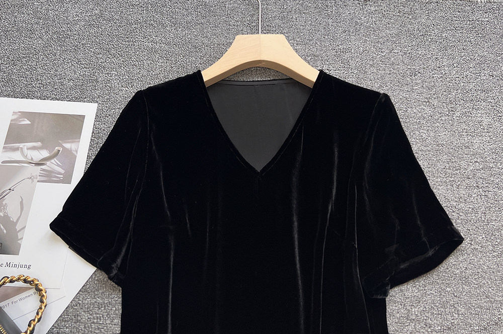 --------------------- 欧洲站2026夏季新款时尚高端桑蚕丝真丝绒 V领短袖T恤衫上衣女 【原售价】225元 【现售价】198元 【推荐理由】