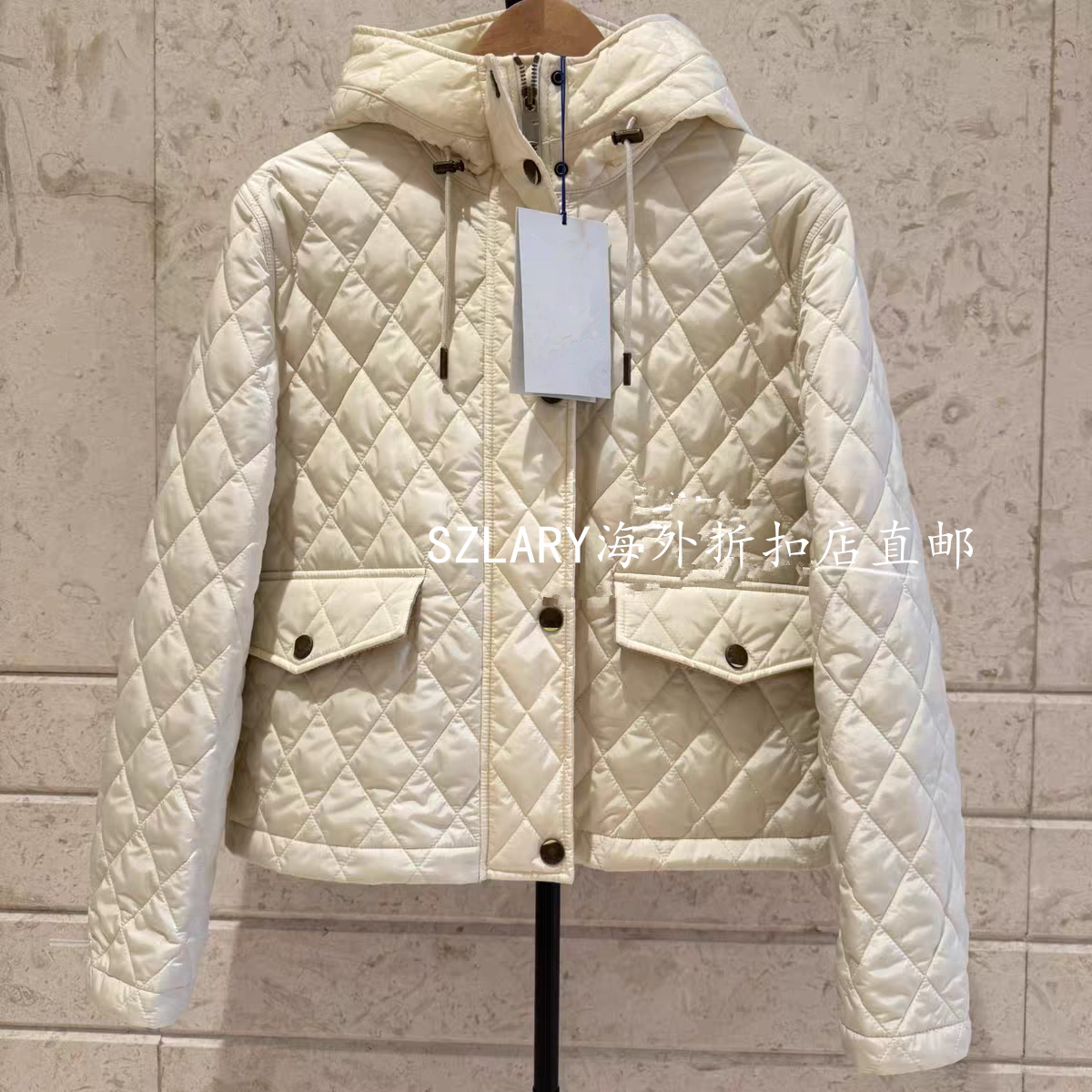--------------------- SZLARY折扣店 女士新款菱格纹温控谷仓短款连帽拉链单排扣 棉服女 【原售价】1090元 【现售价】1090元 【推荐理由】