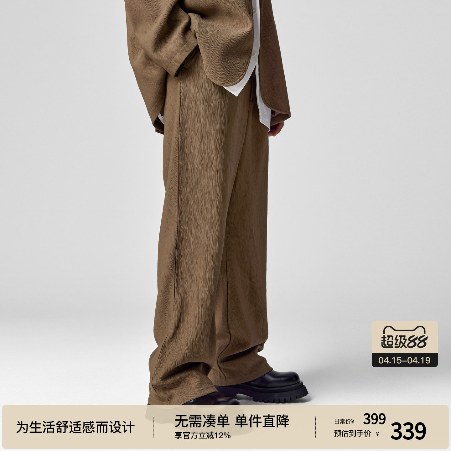 --------------------- BODYDREAM水波纹理西裤 垂感西装裤男春夏裤子宽松直筒裤阔腿裤 --------------------- --------------------- 【原价】269元 【券后价】179元