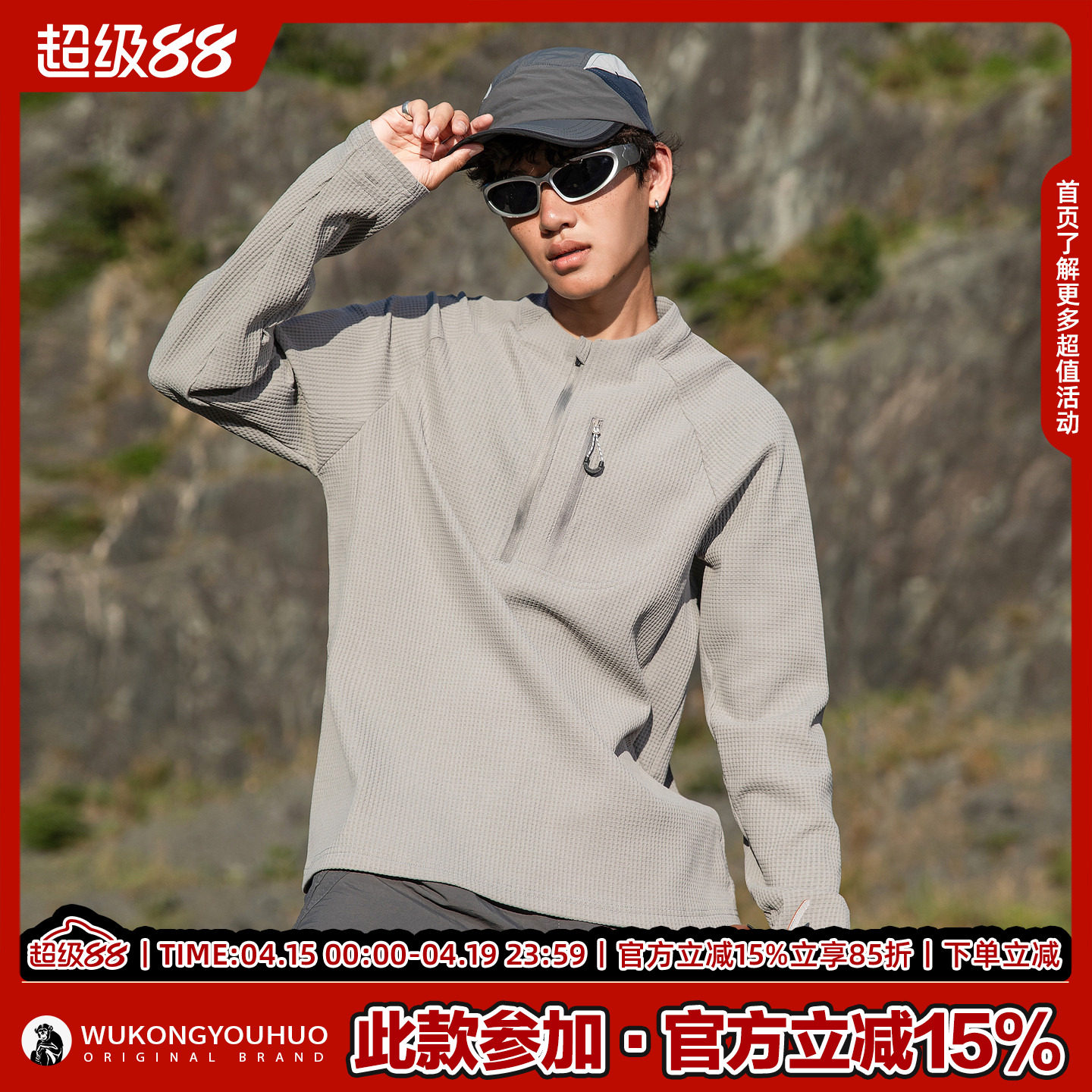 --------------------- 悟空有货户外吸湿速干抗菌半拉链套头上衣男秋季宽松运动长袖T恤 【原售价】196元 【现售价】83.3元 【推荐理由】