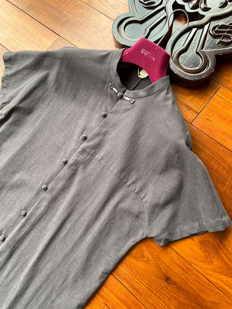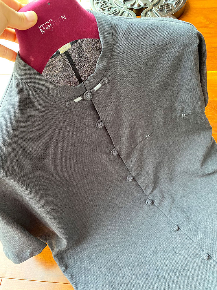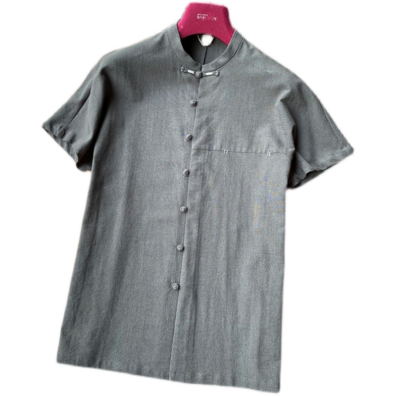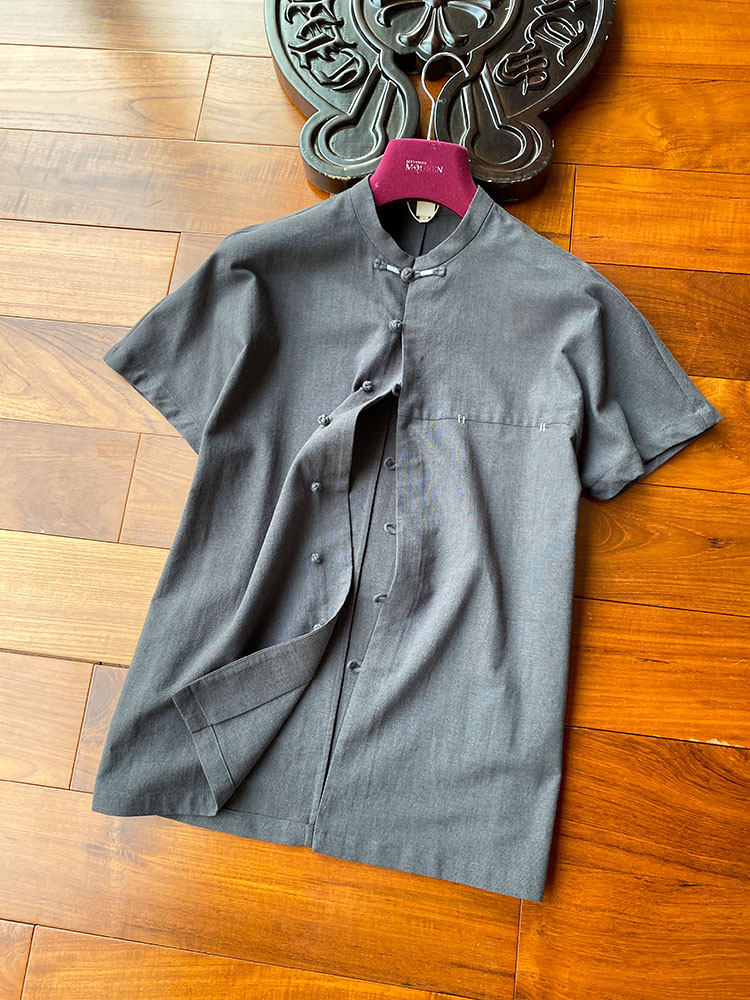 这年头,手工的就是上档次!撞色盘扣高端国潮古风设计短袖衬衫男