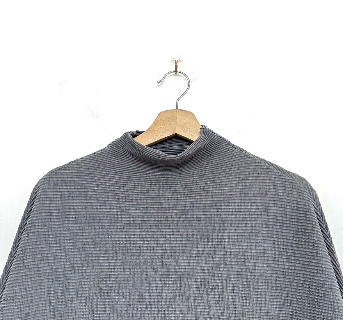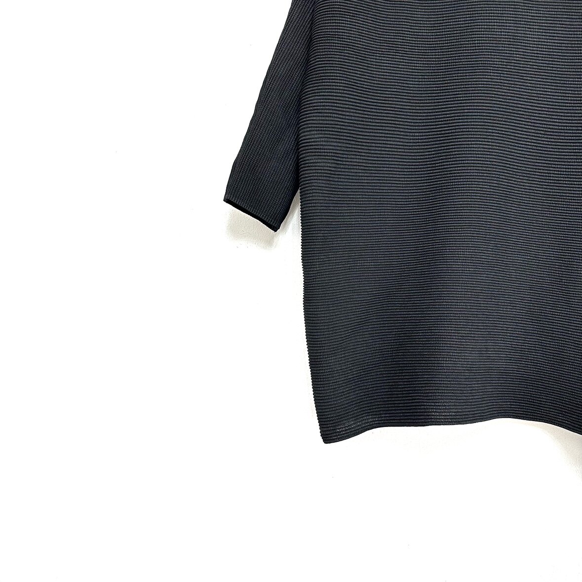 --------------------- 圣迪折扣女装 黑灰拼接撞色个性廓形蝙蝠袖肌理折痕宽松半高领T恤 【原售价】89元 【现售价】78.3元 【推荐理由】