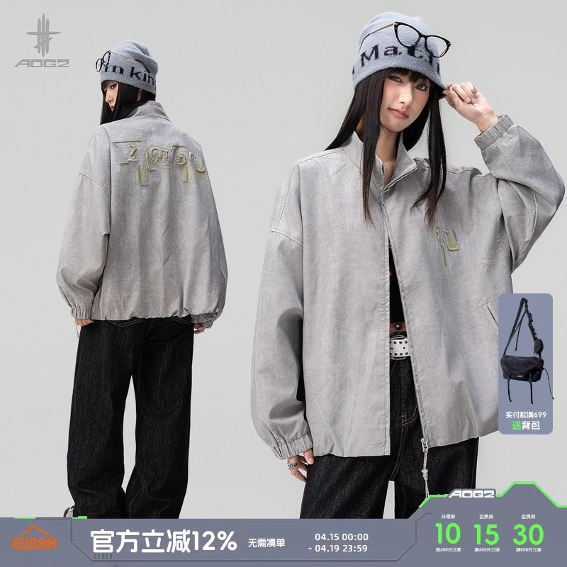 淘宝AOGZ美式高街扎染水洗刺绣字母夹克2026春季男女新款百搭宽松外套