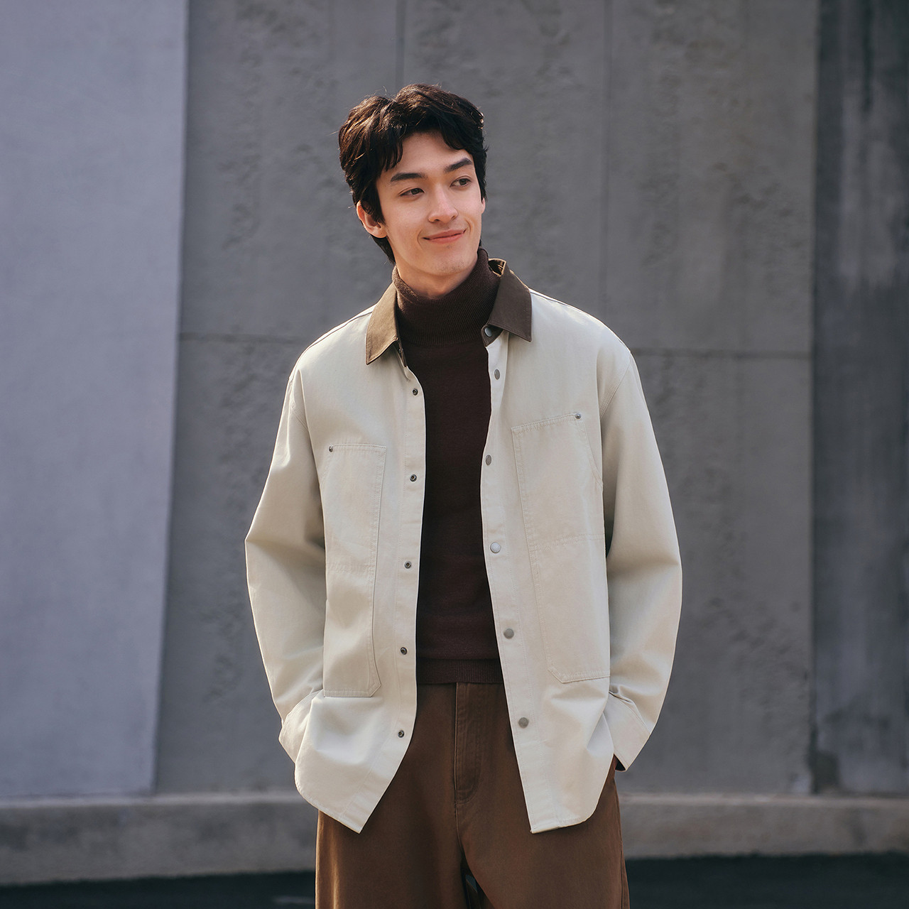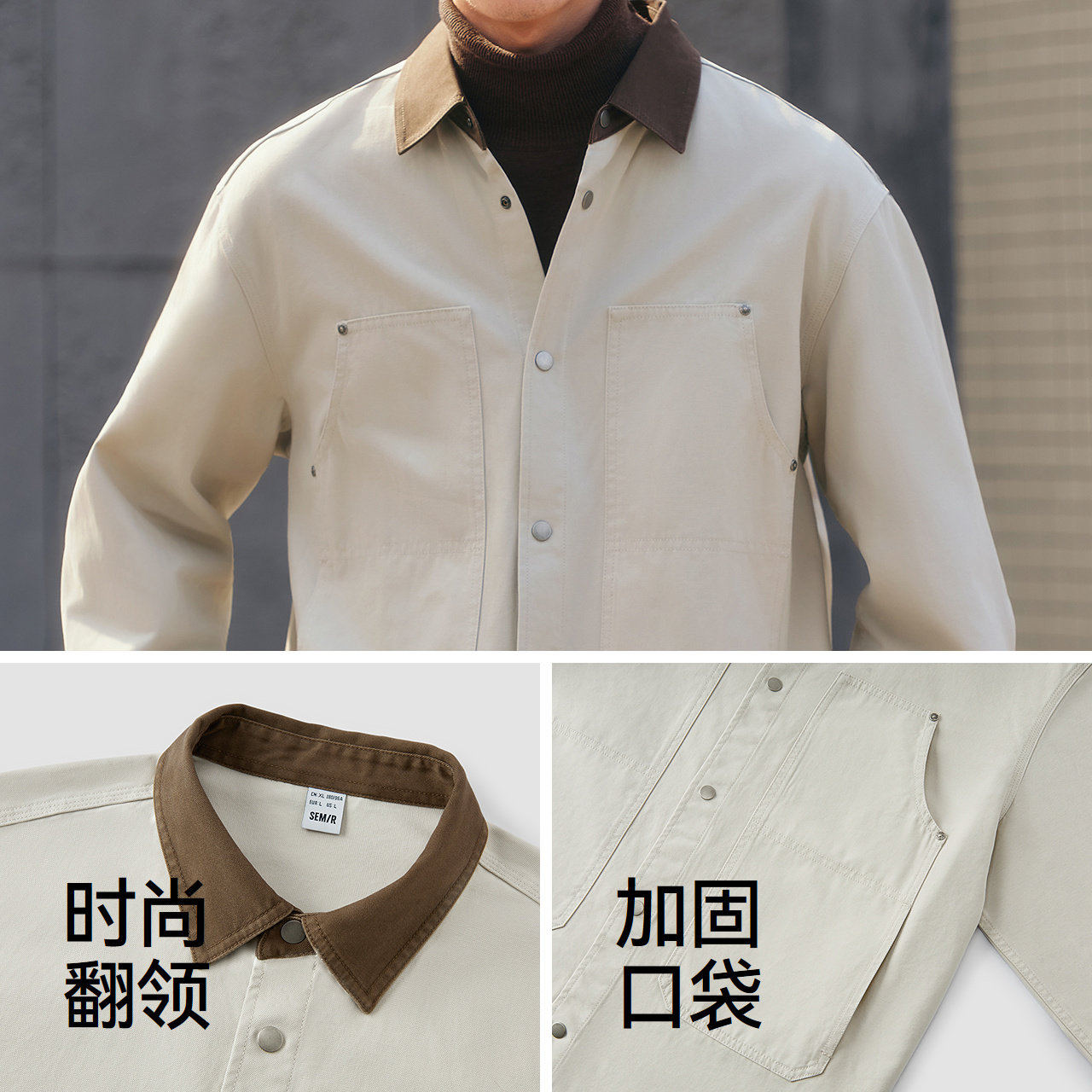 森马长袖衬衫男2026春新款撞色宽松翻领上衣纯棉工装口袋水洗外套
