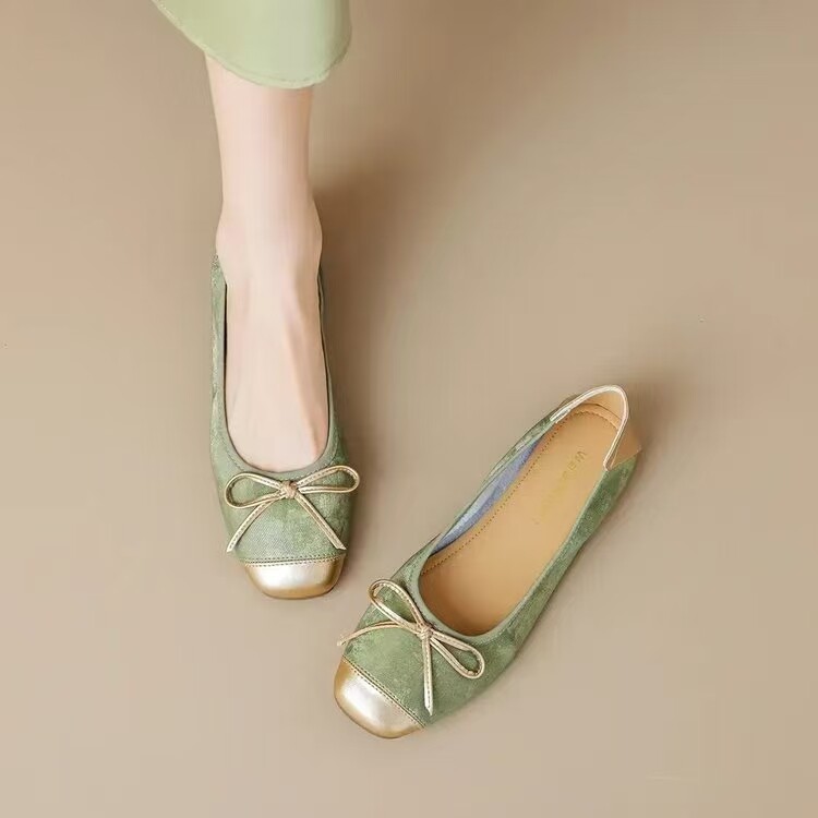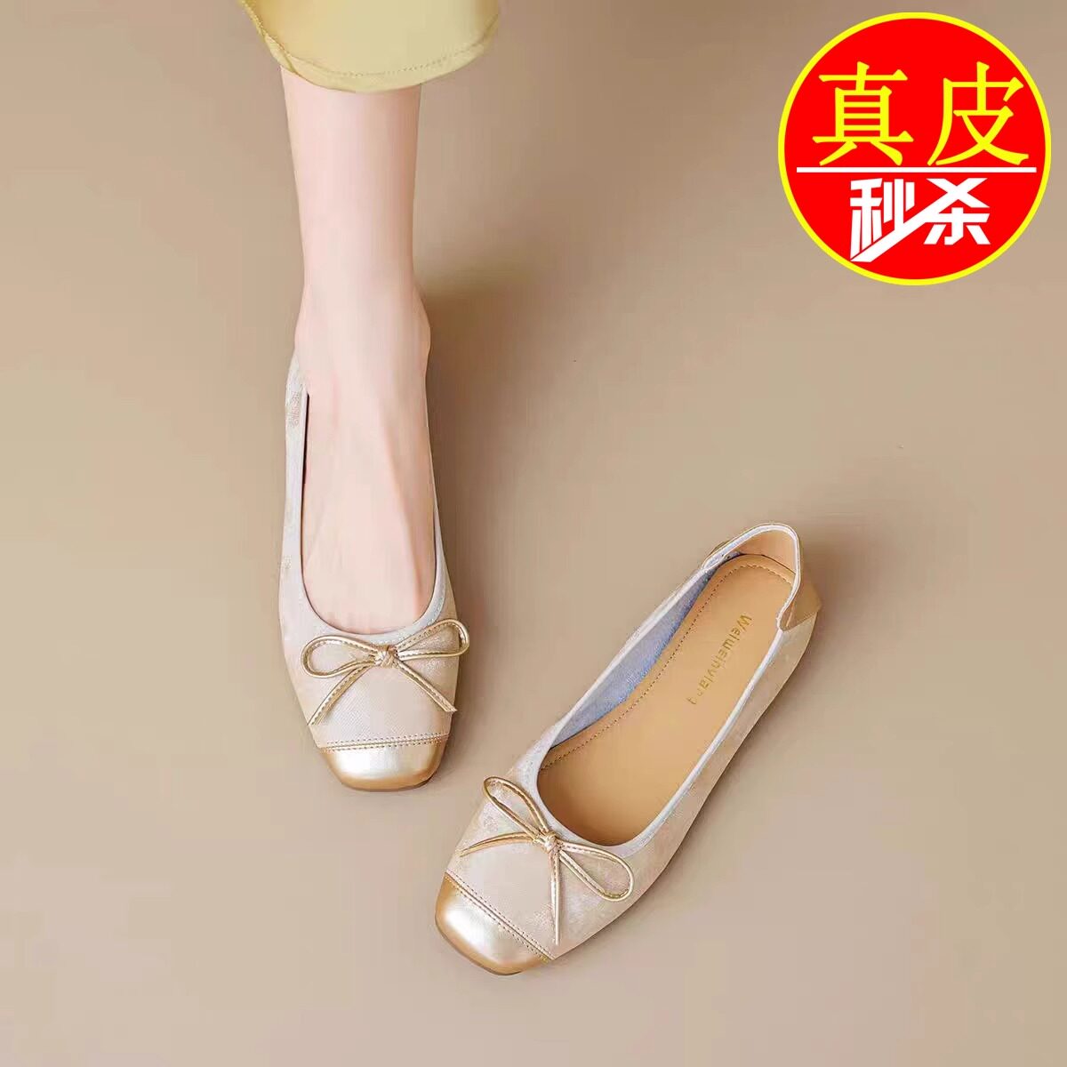 品牌撤柜真皮新中式蝴蝶结单鞋女2026年秋季新款百搭平底鞋配裙子