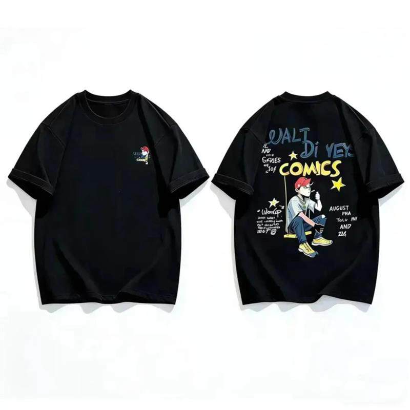 名品坊国潮轻奢纯棉潮流印花圆领短袖T恤男士韩版美学宽松百搭