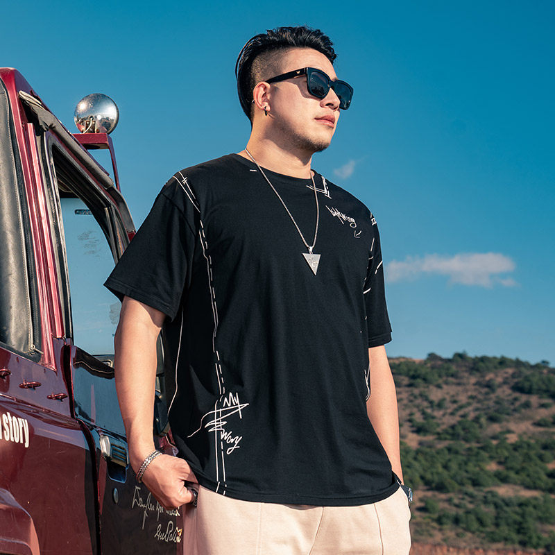 GxxH潮牌大码男装美式休闲短袖圆领男士T恤加肥加大夏季宽松上衣