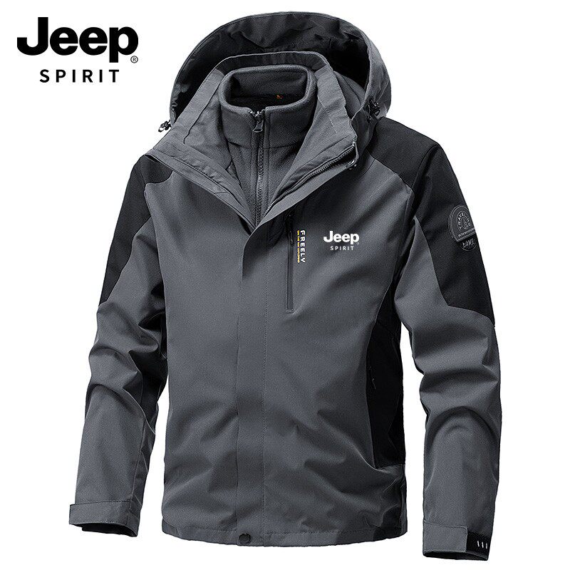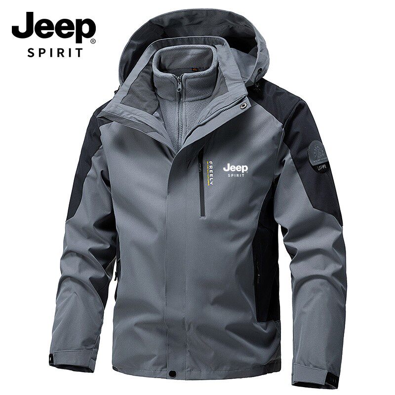 JEEP吉普秋冬新款男士户外冲锋衣青年外套加绒加厚三合一防风防雨