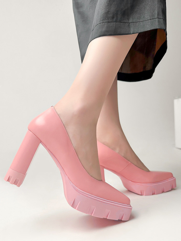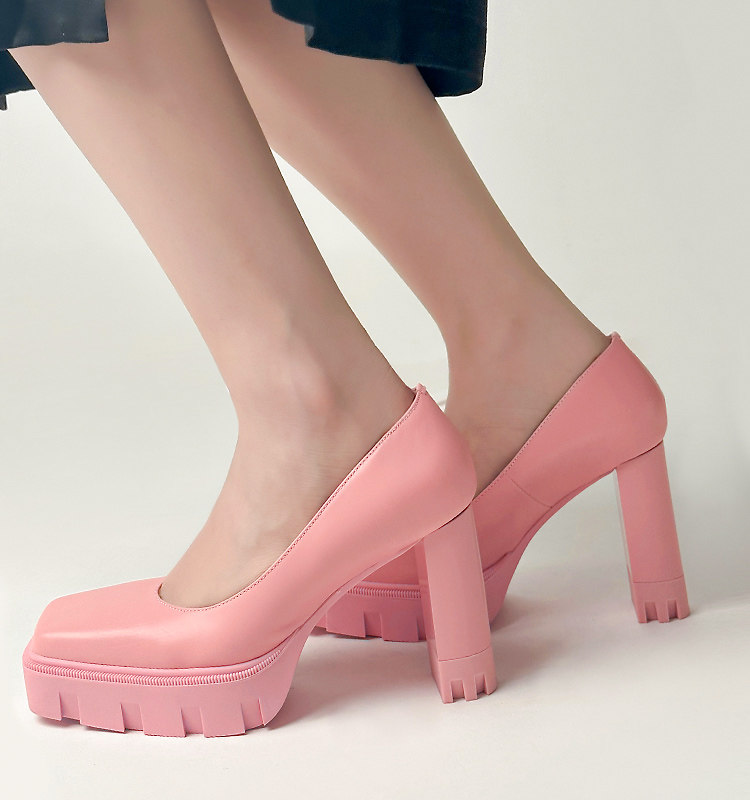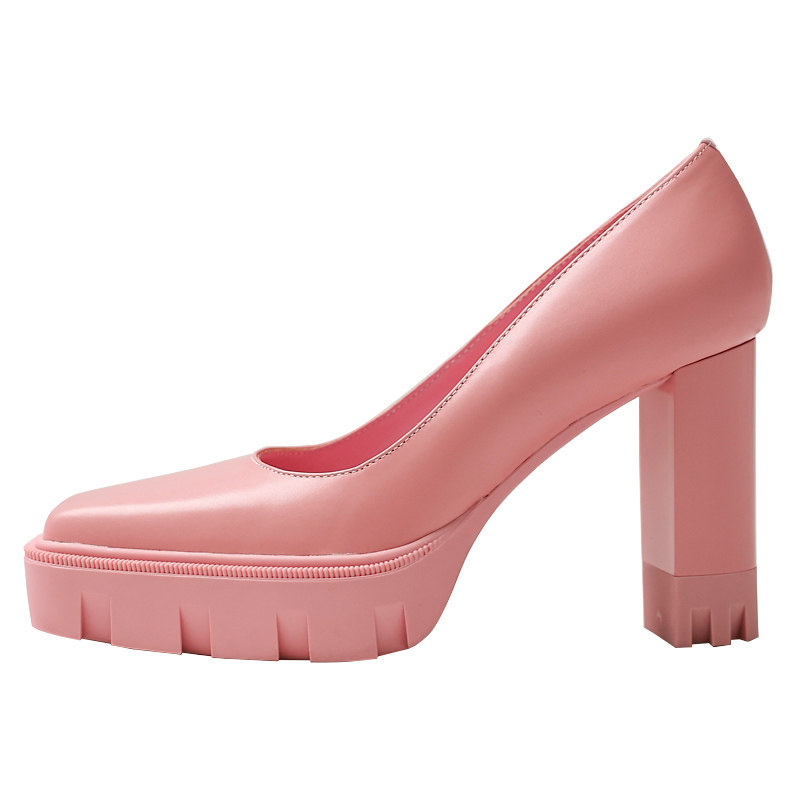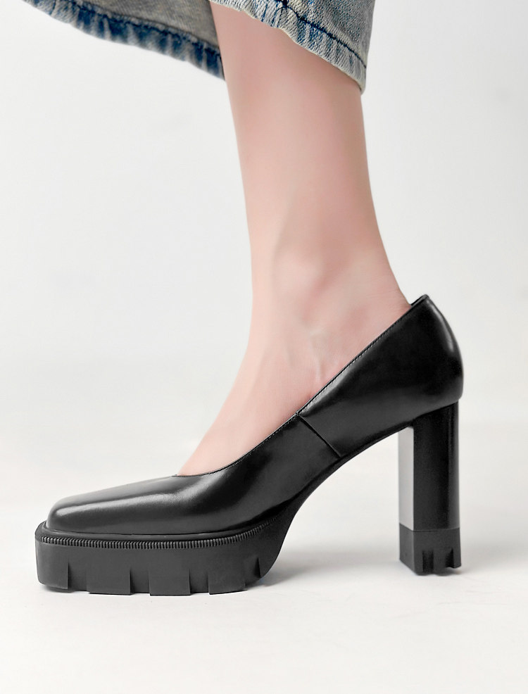 KAKA巴黎走秀款定制胎牛皮方头浅口厚水台名媛社交晚宴粗高跟鞋特
