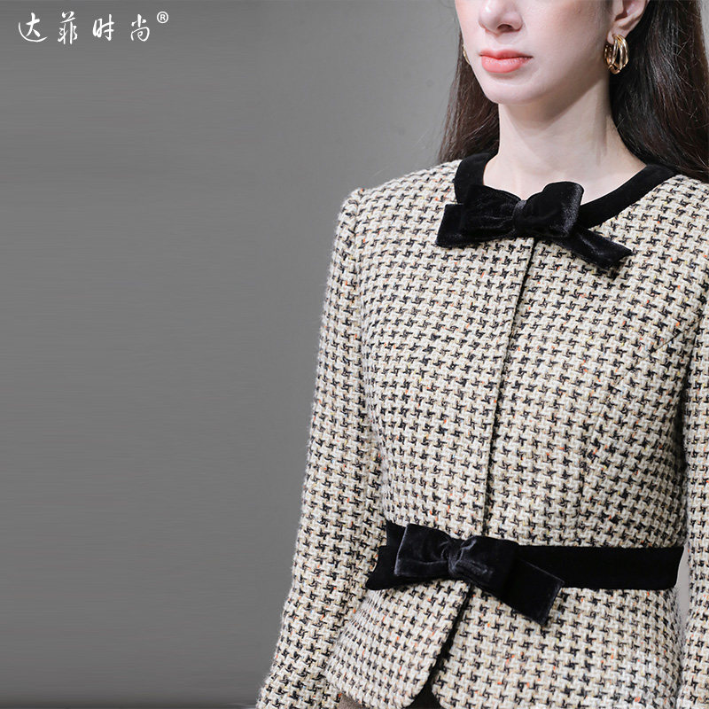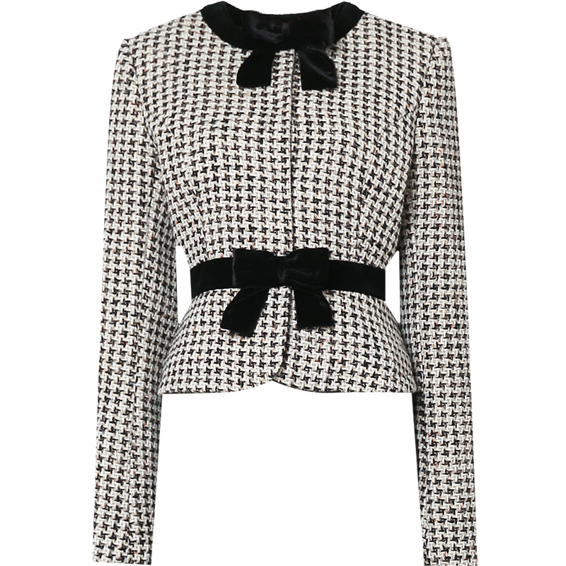 --------------------- W2026春季新款小香风撞色蝴蝶结千鸟格花呢外套气质千金短外套女 --------------------- --------------------- 【原价】818元 【券后价】673元