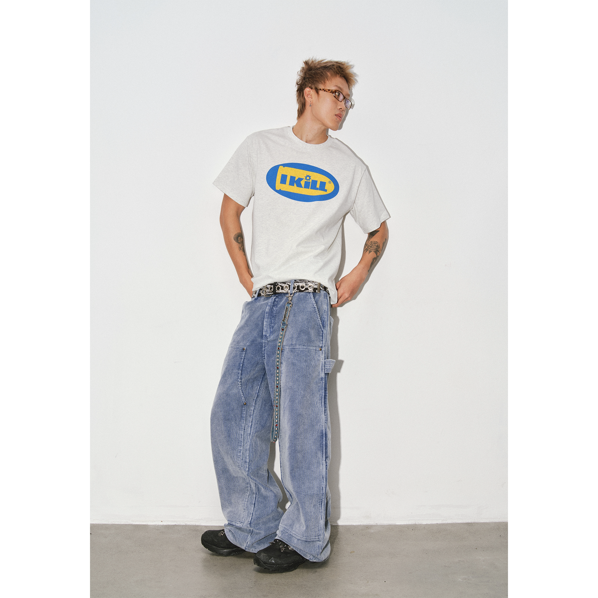 NOVACAM 美式街头夏季vintage恶搞创意LOGO印花短袖男国潮字母T恤