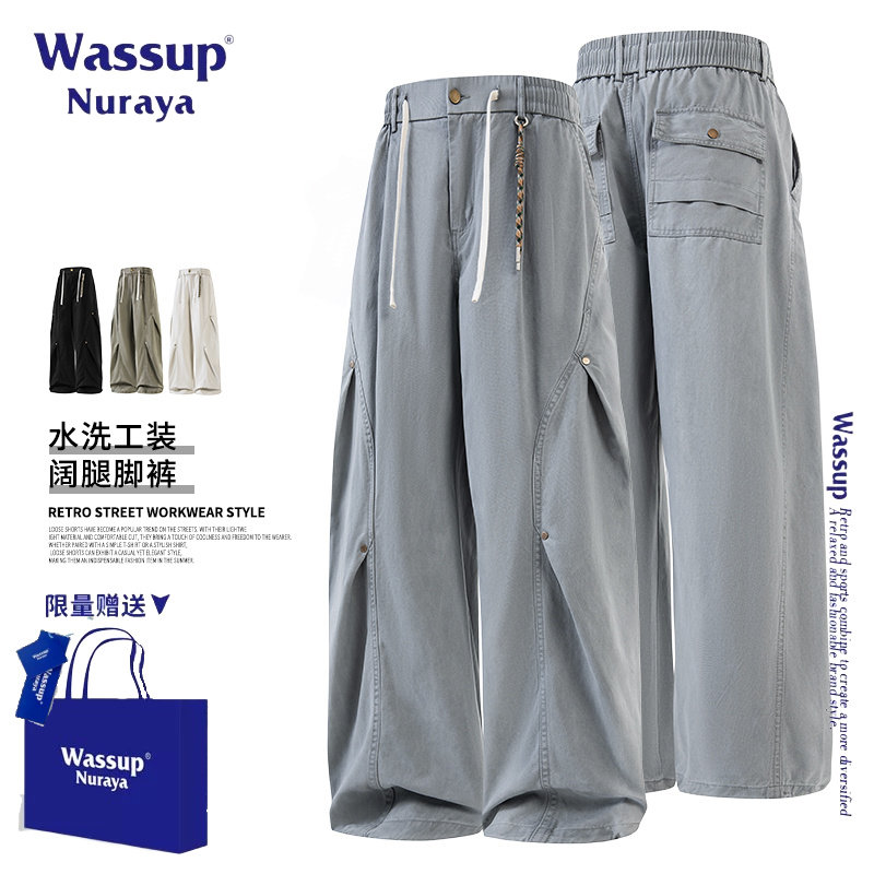 WASSUP NURAYA美式复古可调节束脚弯刀裤男士春秋百搭宽松休闲裤