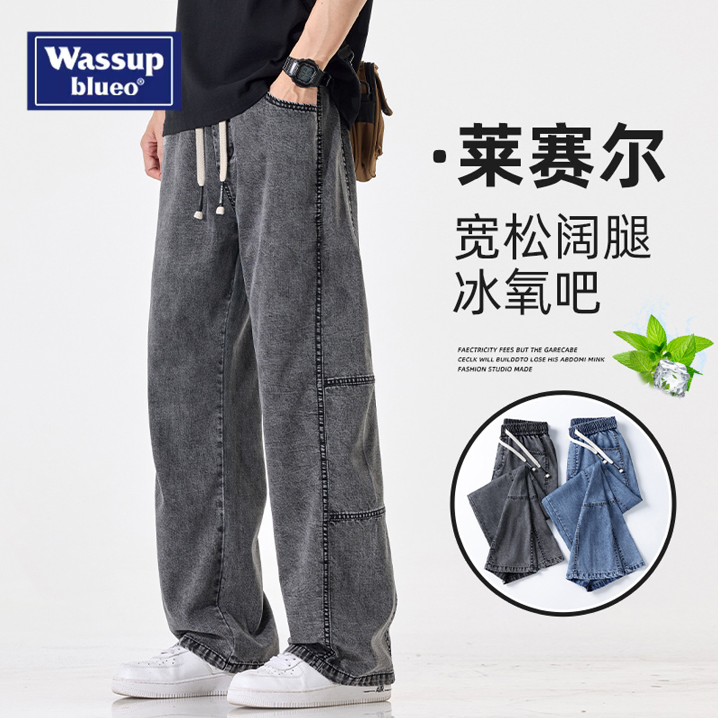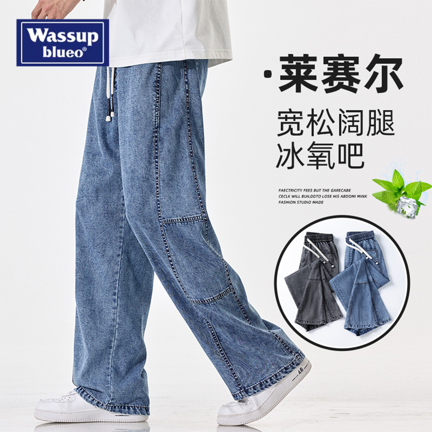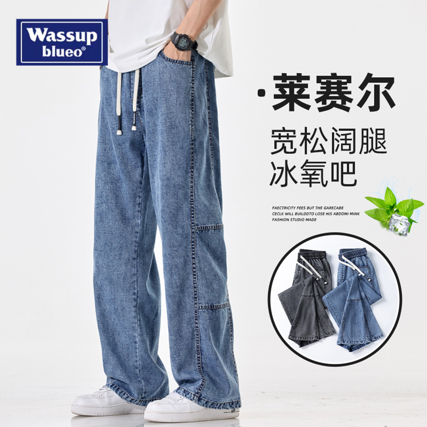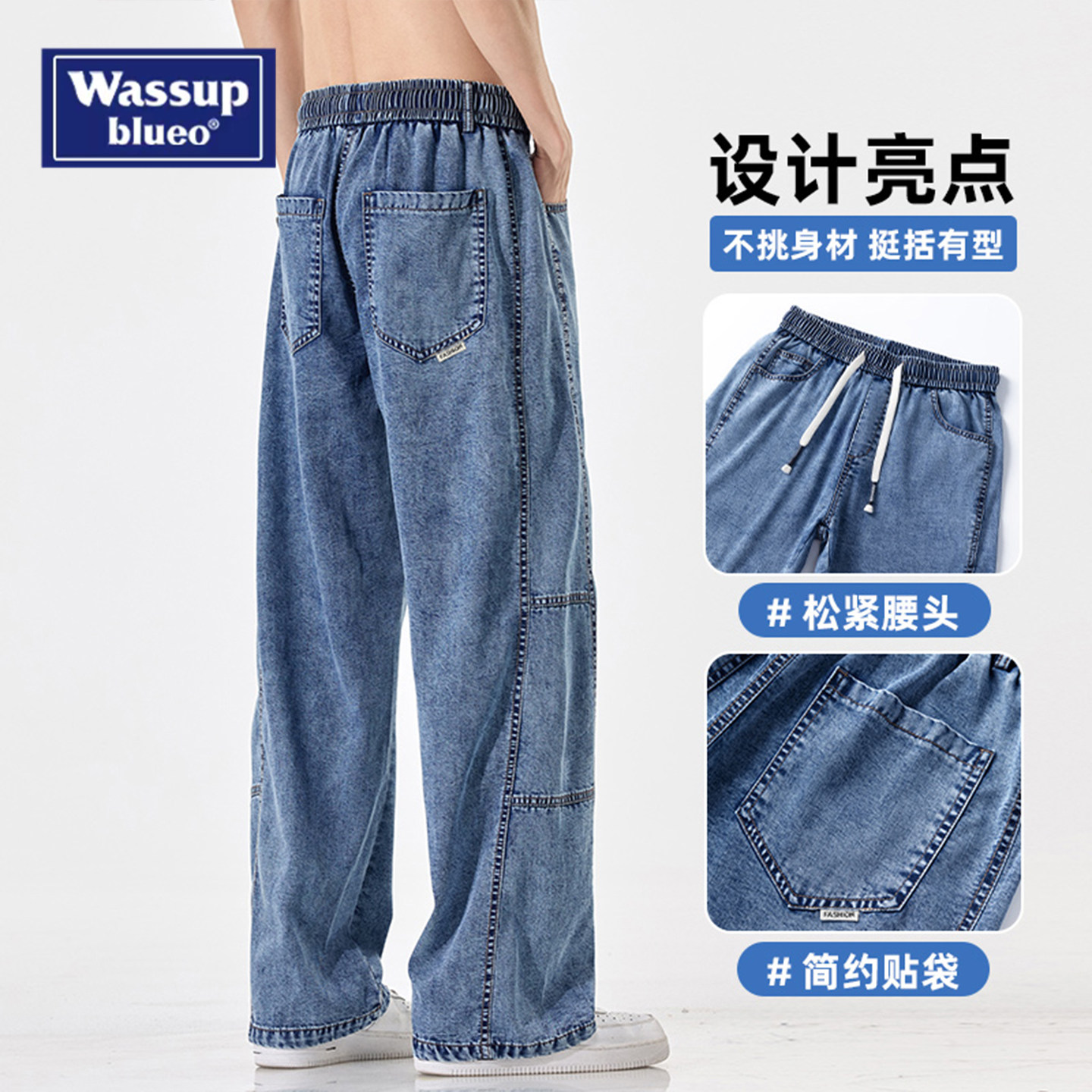 --------------------- WASSUP夏季薄款天丝牛仔裤男士新款美式潮流直筒宽松阔腿休闲长裤 --------------------- --------------------- 【原价】199元 【券后价】149元
