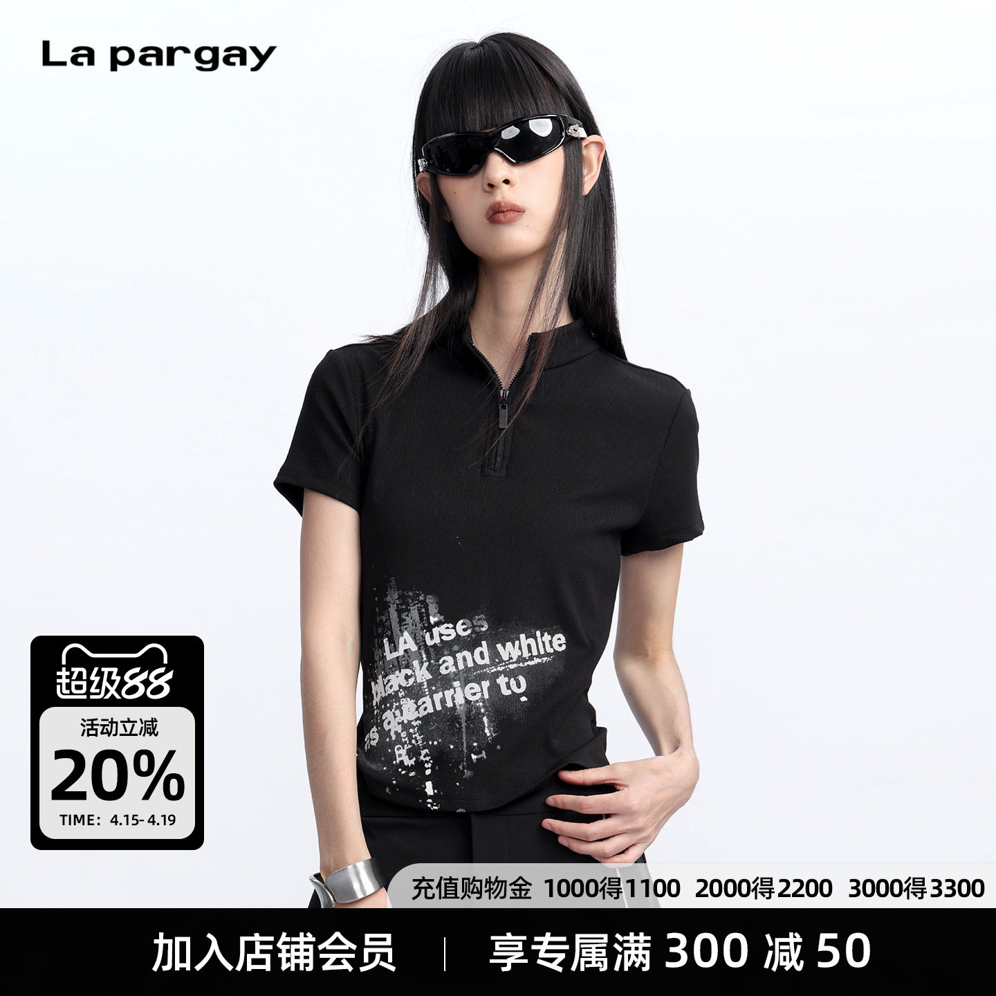 --------------------- Lapargay 字母印花短袖T恤 不规则短款修身上衣 L75300204V --------------------- --------------------- 【原价】531元 【券后价】374元