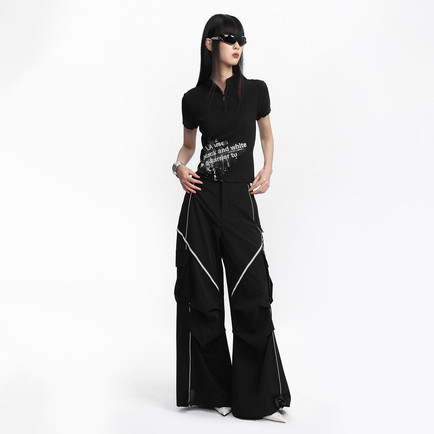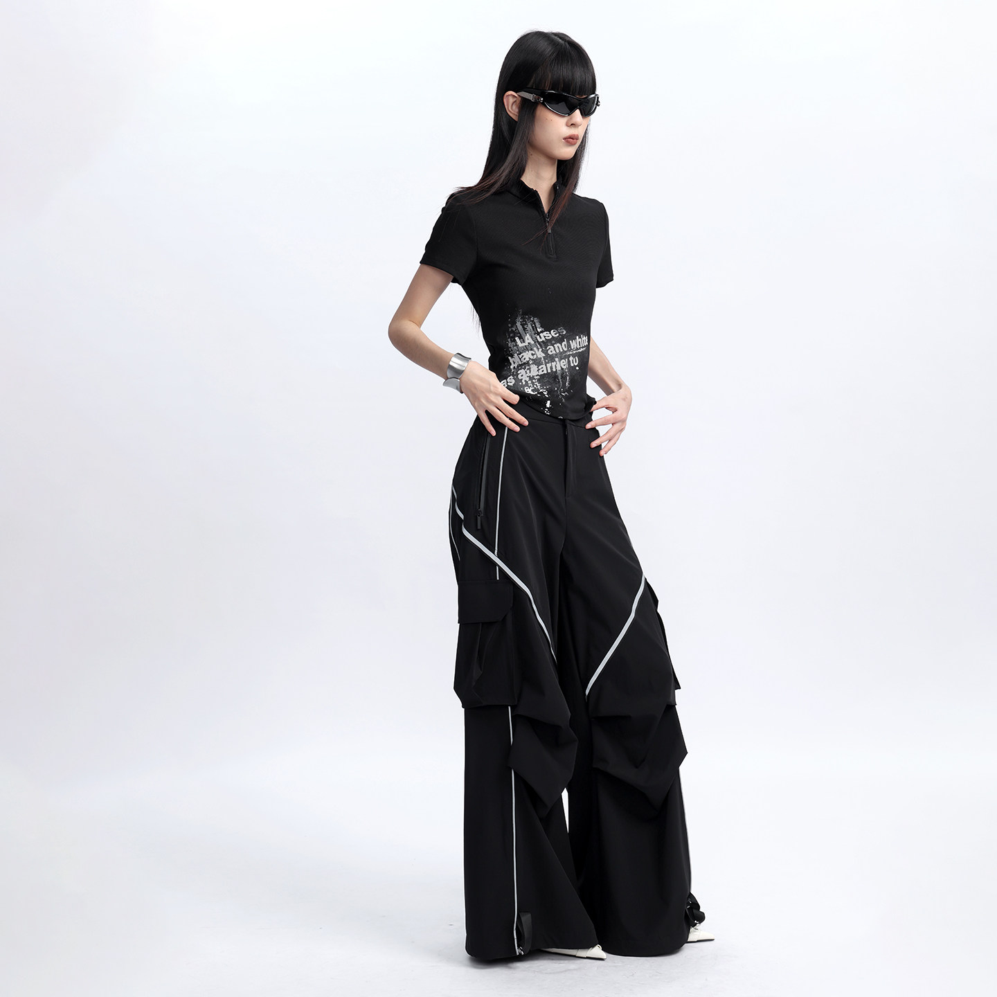 Lapargay 字母印花短袖T恤 不规则短款修身上衣 L75300204V