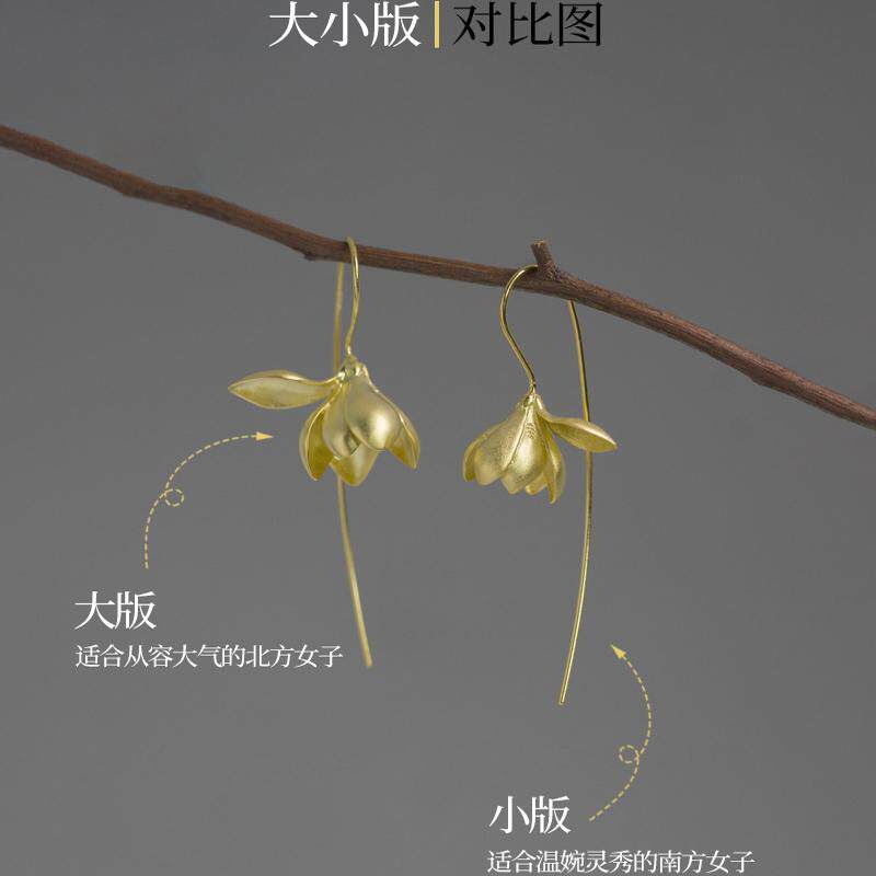 淘宝梵灵原创小众设计款绽放玉兰花耳环S925纯银饰品文艺复古新中式风