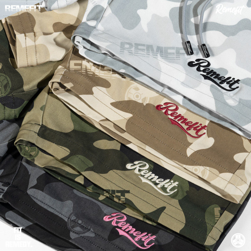 REMEFIT 重工迷彩可拆卸 三穿美式直筒调节束口膝上4分长裤短裤