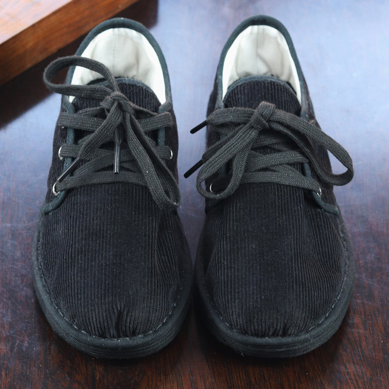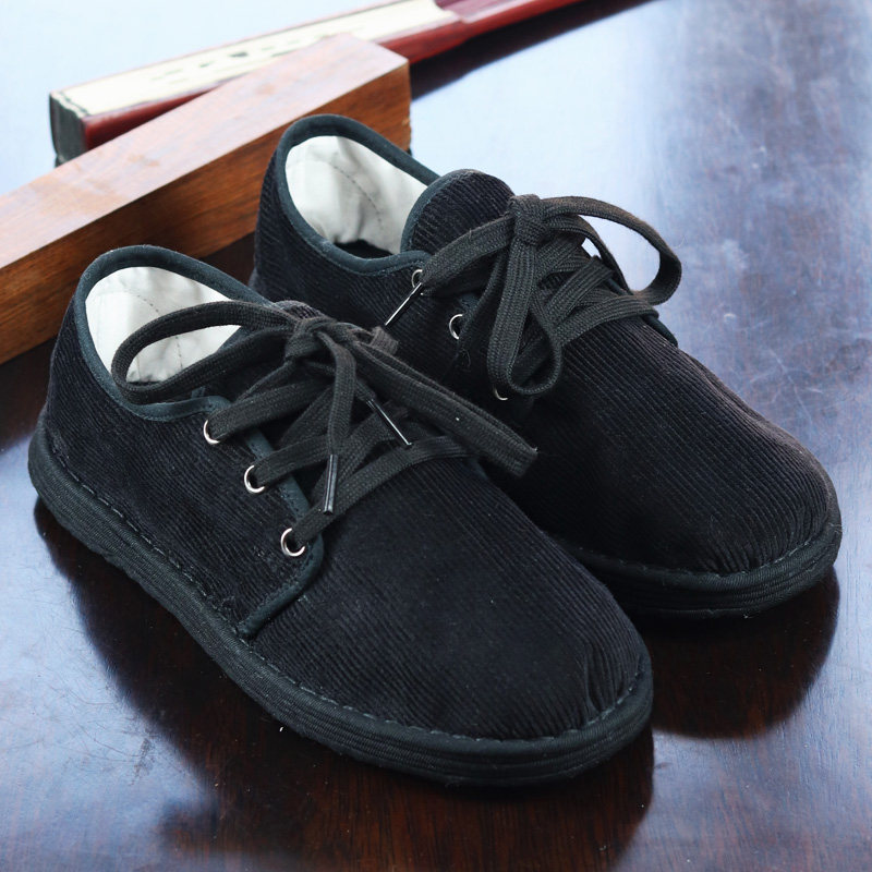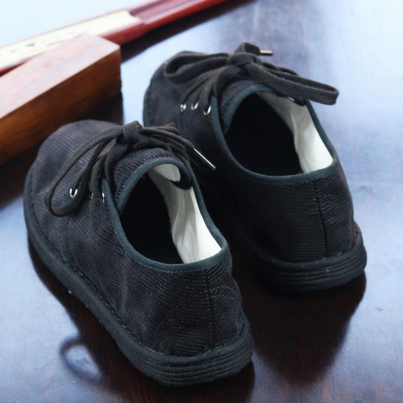 新品农家纯手工纳底布鞋男 女 黑色灯芯绒系带透气平底传统单鞋子