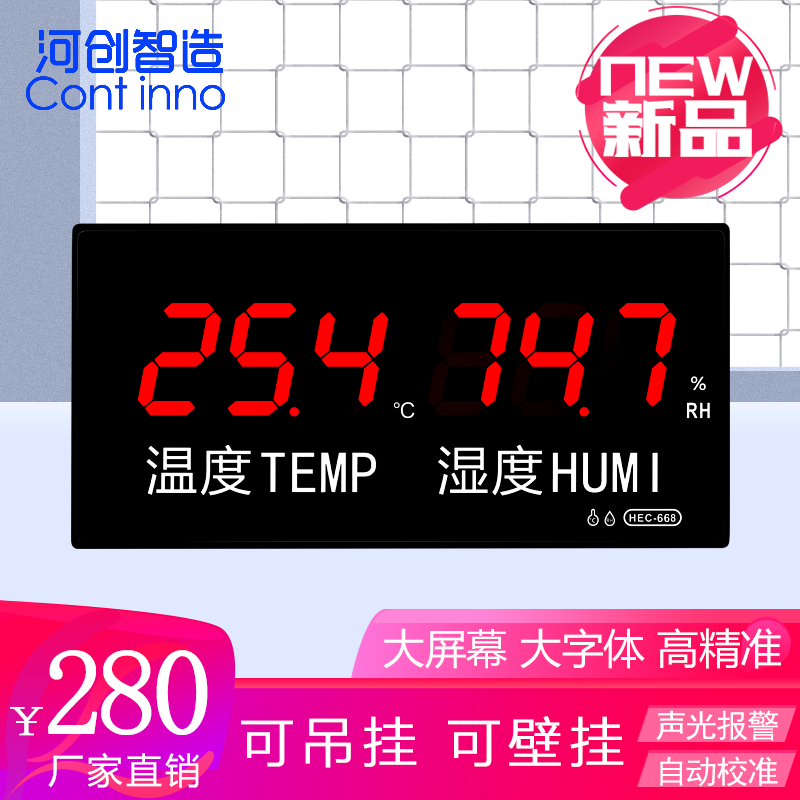 --------------------- 超大屏幕高精度温湿度显示仪带报警校正车间温湿度计HEC668 【原售价】280元 【现售价】280元 【推荐理由】