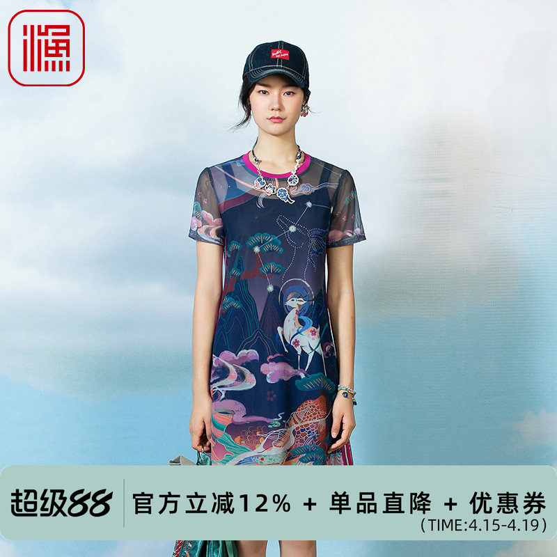 --------------------- 渔牌女装裙子女夏季2023新款网纱印花两件套国风国潮裙子FGFB0111 --------------------- --------------------- 【原价】1876元 【券后价】280元