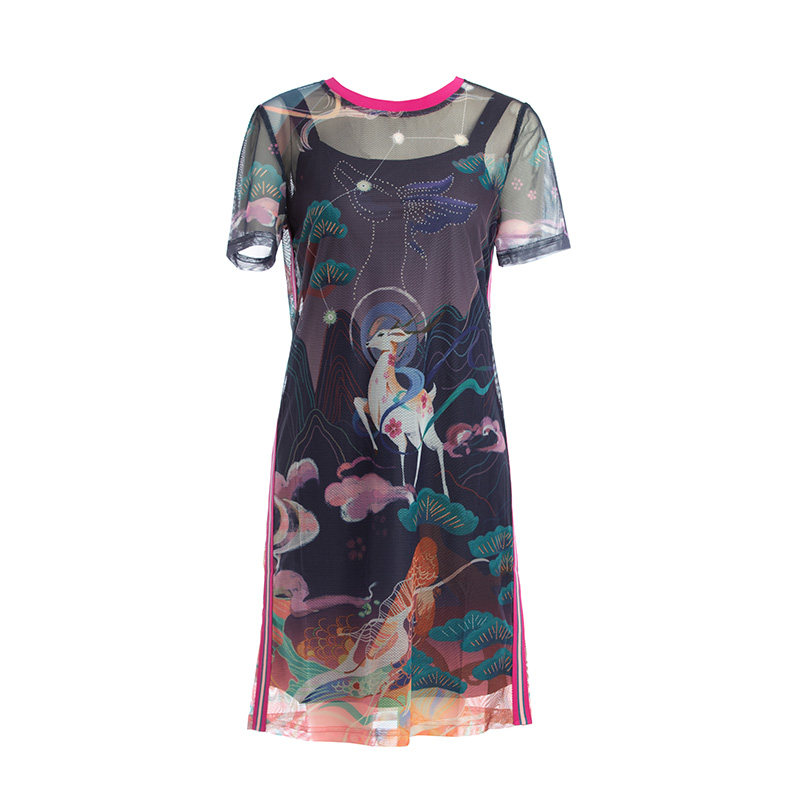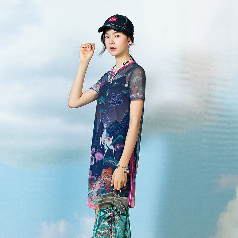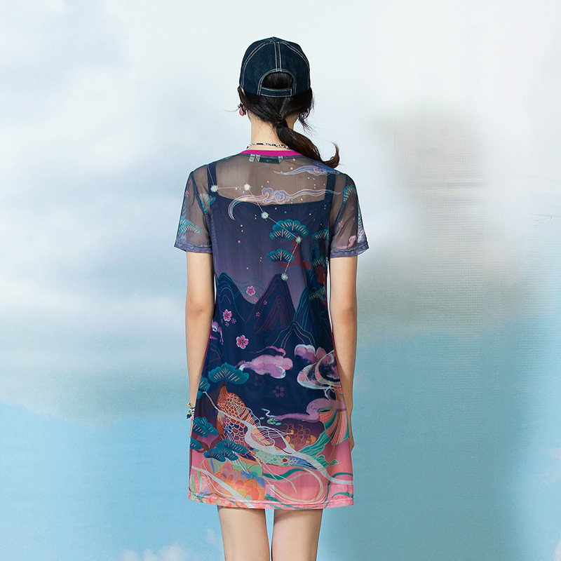 渔牌女装裙子女夏季2023新款网纱印花两件套国风国潮裙子FGFB0111